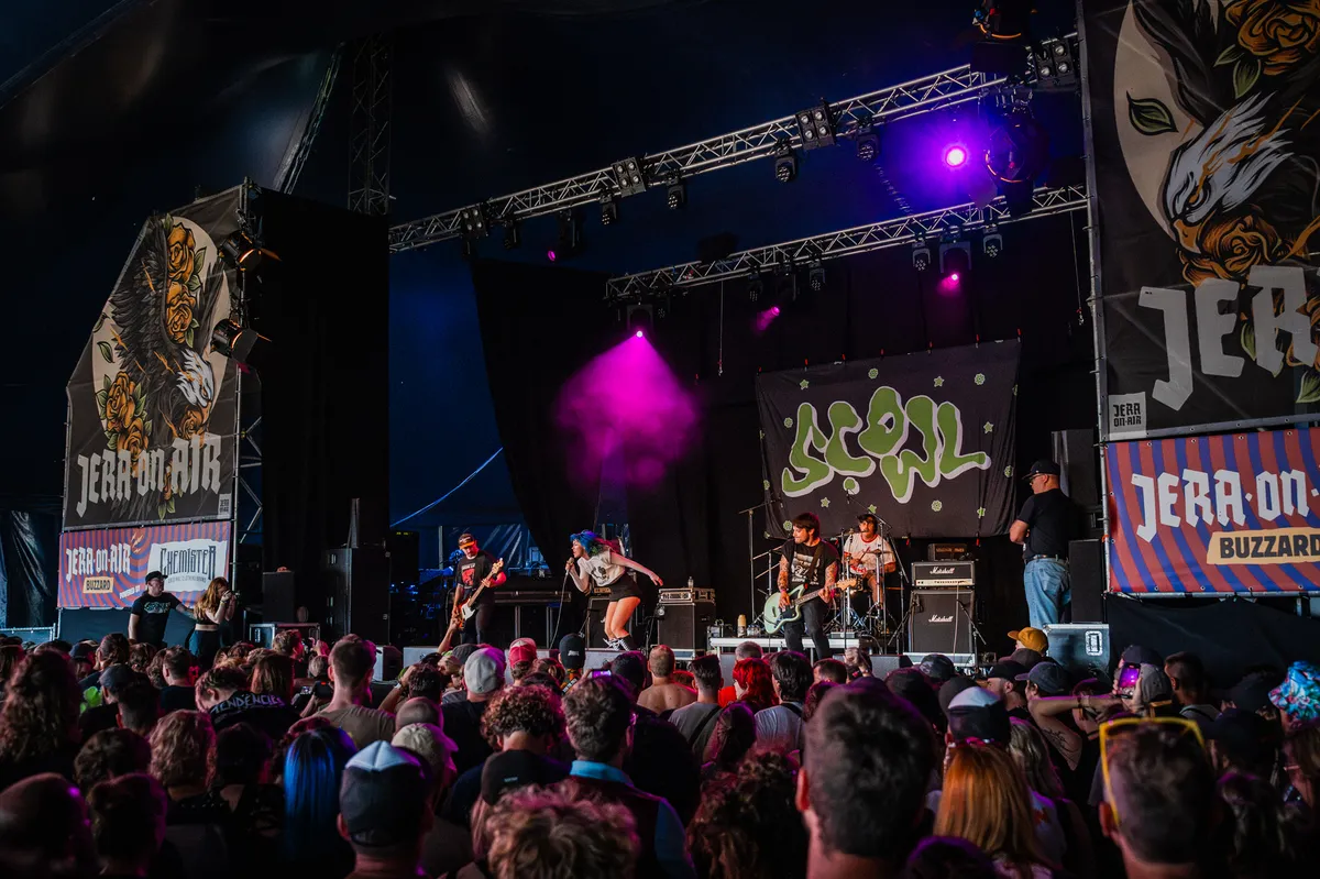 Net als Brutus mag Hang Youth een stapje omhoog doen. Stonden ze in 2022 op Jera nog in de Buzzard, staan ze nu op vrijdagavond in de Vulture. Wat je verwacht te krijgen, krijg je bij de band uit Amsterdam: "Hoe duur is het bier hier?" en "Wie is er hier dakloos?" zijn de introducties tot de nummers ‘JE HAAT GEEN MAANDAG, JE HAAT KAPITALISME’ en ‘(GE)WOONBELEID’. Het activistische gedachtegoed dat de band probeert uit te dragen, krijgt op die manier vorm. Helaas laat het muzikaal voornamelijk in het begin te wensen over. 36 nummers lang constant goed blijven, ook al zijn ze kort, blijkt dan lastig. En nee, wij hebben het aantal nummers niet staan tellen. Zanger Abel van Gijlswijk zei het voor. Hang Youth sluit af met zijn bekendste plaat ‘BELASTINGDIENST’, waarbij twee jonge jongens uit het publiek de gitaar en drums mogen bespelen. Gecombineerd met de energie van de band die zo groot is als de opwekking van een nog nader te bouwen kerncentrale door een aanstaand rechts kabinet, is dat een meer dan prima afsluiting.