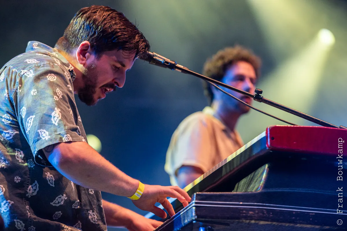 De avond breekt aan en dat betekent dat het tijd is voor Dawn Brothers op het Amstel podium. Een band die perfect op dit tijdstip past. Een warm zomerbriesje, een ondergaande zon… Maar plots begint het voor de eerste keer dit weekend te regenen. De wolken lopen leeg en helaas doet het publiek voor het podium hetzelfde. Zonde, want als er iets is waar Dawn Brothers goed in is, dan is het zorgen voor eigen zonnestralen en een warm gevoel. Fluitende orgels, gierende gitaarsolo’s en een stem gemaakt voor bluesrock laten de overgebleven mensen bewegen en het maakt voor hen niks uit dat er plassen voor het podium ontstaan. Toch steken de muziek en de dansende mensen anderen ook aan en krijgt Dawn Brothers een welverdiend groter publiek. Met meerstemmige zang en spanning opbouwende gitaarriffs kan je zeggen dat Dawn Brothers niet saai is om naar te kijken en dans je zo een uur weg. (FC)
