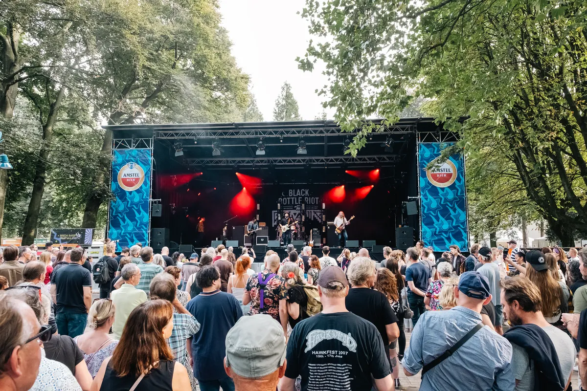 Op het einde van de middag wordt Valkenbergpark rijkelijk gevuld door de stevige klanken van Black Bottle Riot. Het drukbezochte veld beweegt - en af en toe nog stiekem danst - tevreden mee met de band. Deze mannen brengen met hun vijf studioalbums blues, country en rock uit Nijmegen. Hun nummer ‘Broad Life City’ is zelfs over Breda geschreven. Het is een goed gestroomlijnde set, waarin de drummer een nummer zingt, de zanger rijkelijk mondharmonica speelt en de gitarist soepel meedanst op de muziek. Een zelfverzekerd nonsense optreden waarin er altijd een lach klaar staat voor een camera. De echte pit van deze band komt pas naar voren in het laatste nummer. Het publiek is echter nog een beetje te loom om volledig mee te gaan in de energie. Misschien was Black Bottle Riot beter geschikt voor later op de avond. (MB)
