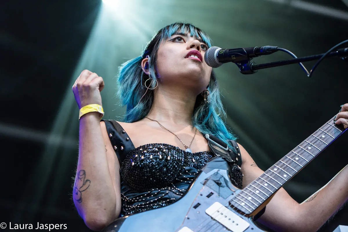 Fans van My Bloody Valentine smirken misschien al een beetje bij het horen van deze naam en terecht: de vrouw achter het project Lov3less, Simone van Vugt, koos deze naam omdat het album 'loveless' dichtbij haar staat en zijzelf ook in november 1991 ter wereld is gekomen. Diehard MBV-fans tevredenstellen, dat gaat Van Vugt momenteel niet lukken. Daar is het dan toch te gepolijst en zoet voor. Radiovriendelijk, dat is het woord. 3FM heeft ze dan ook al tot een van hun talenten benoemt. Toch ligt de punk er soms dik bovenop. Van Vugt poseert haar hand op haar kruis terwijl ze zingt over haar pussy en als de band de energie opvoert trappelt Van Vugt terwijl ze steeds hoger zingt, krijst, en zo een onbekend nummer tot climax brengt. Dat de livepremière van deze act in juni (!) was is raar om te bedenken; er staat een geoliede muziekmachine op het podium. Dit team heeft werkervaring vanuit Sue The Night, Typhoon, Pitou, Indian Askin, The Brahms, 45ACIDBABIES en méér. Dit is misschien wel Nederlands éérste supergroep. (MB)