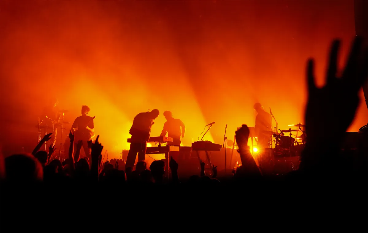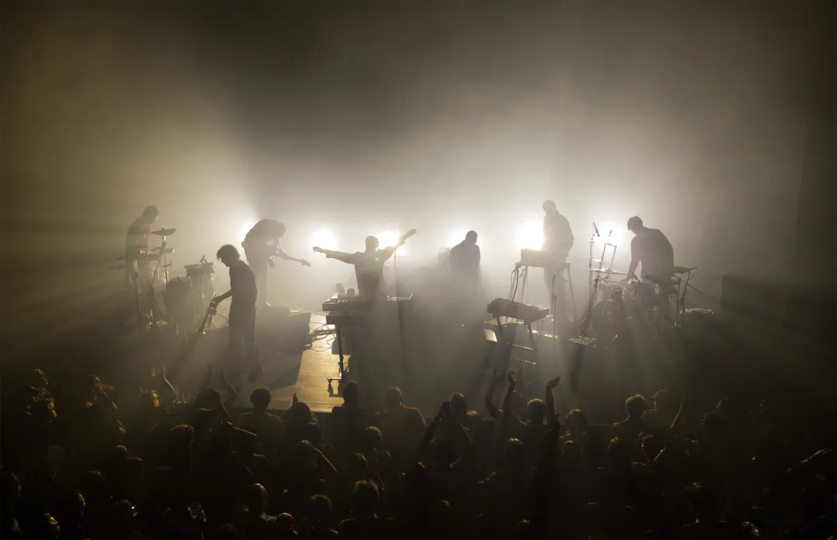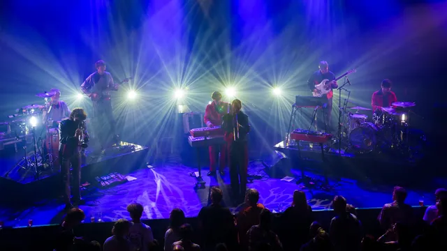 Waar het voor de zeven heren in de middag al begon met een kinderconcert, was het nu tijd voor de avondshow. Het podium ligt vol met gear: niet alleen drums, gitaar en bas, maar ook synthesizers, verschillende percussie-instrumenten en een verhoogd plateau. Het voelt als een muzikale speeltuin, precies wat je verwacht van deze Amsterdamse dance/electro band 'Jungle by Night'.