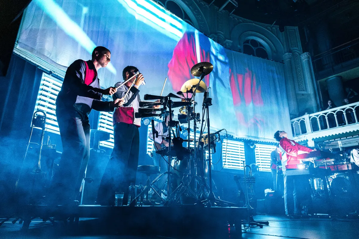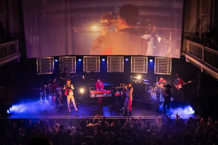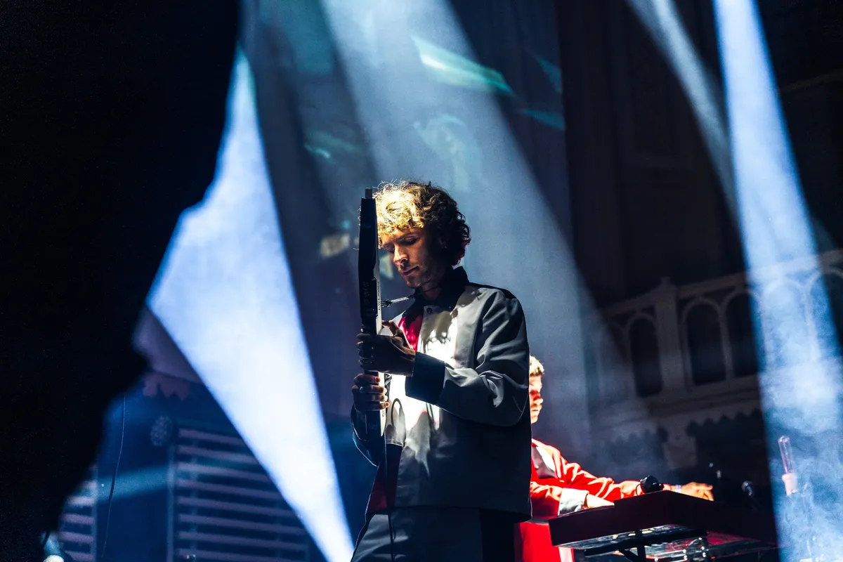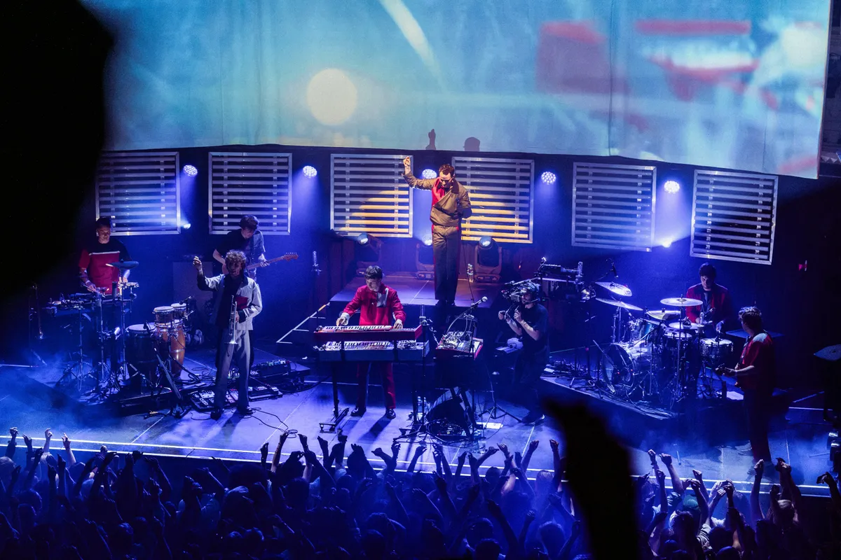 De zaal zit vol spanning te wachten tot Jungle By Night het podium betreedt. Een enorm projectiescherm toont beelden van de bandleden die naar het podium bewegen, begeleid door een robotachtige talkbox-stem die het publiek meteen aanmoedigt met: ‘We love synergy, come on give some energy!’ De opzwepende baslijnen en epische synths zorgen ervoor dat het feest direct losbarst.
