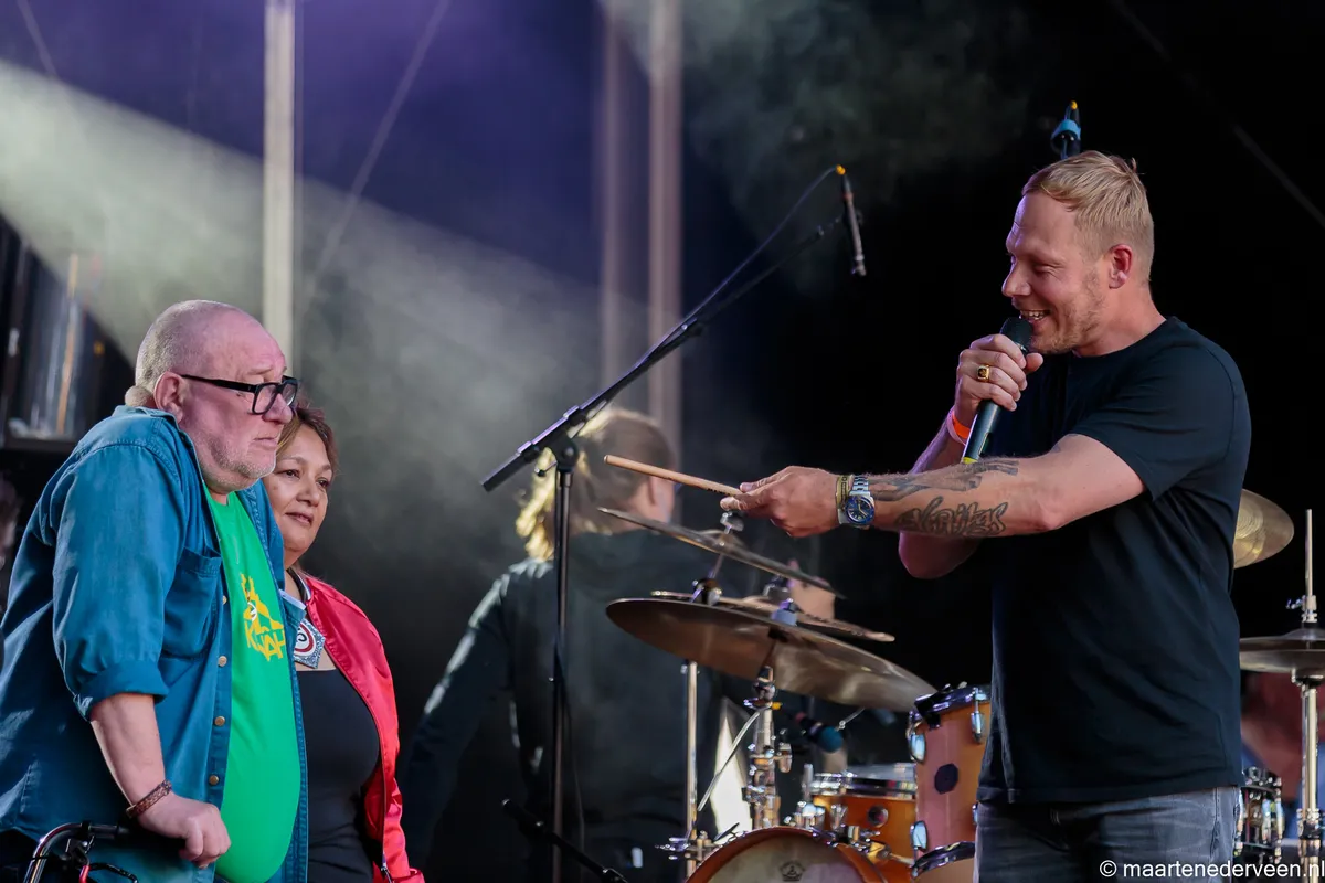 Cesar Zuiderwijk is vandaag zelfs meerdere malen op het podium te vinden. Zo doet hij onder aanvoering van The Clarks mee met de Pioniers van de Nederpop. Ook Rudy Bennett (The Motions) en Theo van Es (The Shoes) sluiten aan. Die laatste “hoort geen flikker”, maar desondanks doet het publiek, dat ook met gehoorapparaten is uitgerust, enthousiast mee op ‘Na Na Na’. Kers op de taart zijn de Earring-klassiekers ‘Twilight Zone’ en ‘Radar Love’.