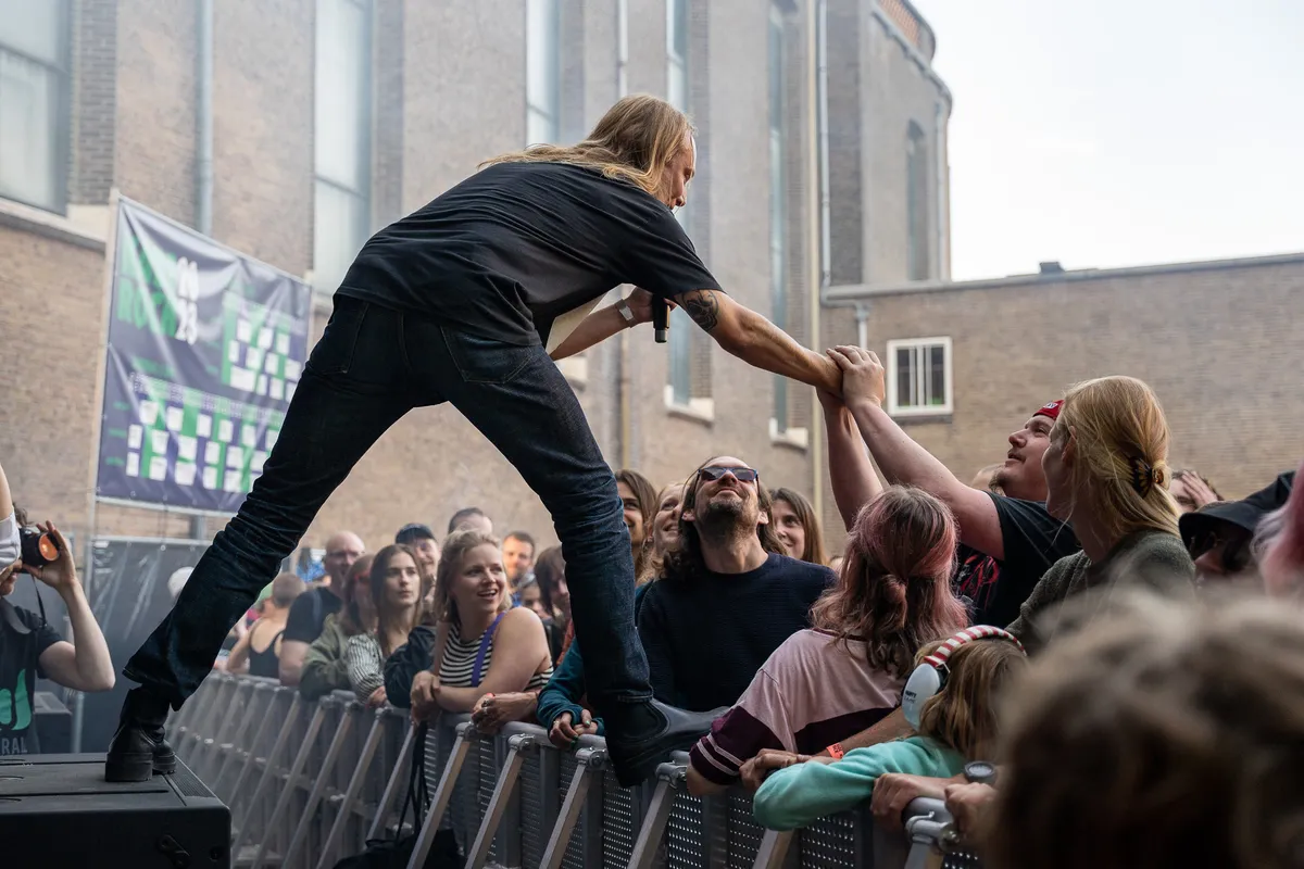Het Amsterdamse psychedelische stonerrockkwartet Temple Fang zuigt met één fuzzy riff de donkere Musicon-zaal vol. In navolging van Heath is ook deze band een meester in uitgesponnen, warme en groovende rock, al neigt Temple Fang meer naar prog met een lekker gruizig stonerrandje. Even voelde Musicon even als concertzaal 013 op een Roadburn-dag. Dat is ook niet verwonderlijk, want Temple Fang mag met recht een Roadburnband worden genoemd. Ze speelde er in 2019 en is graag geziene gast op soortgelijke festivals zoals Desertfest, Sonic Whip en Soulcrusher. Het valt op hoeveel bekijks Temple Fang trekt. De binnenzaal is en blijft vol terwijl de thermometer buiten boven de 20 graden stijgt. De Amsterdammers hebben er zelf zichtbaar plezier in en er wordt met overgave gespeeld. Het was een louterend uurtje voor zowel publiek als band. Heel fijn. Meer van dit soort bands graag.