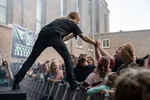 Een show van Hang Youth is 50% comedy en 50% punk, legt de frontman uit. Er valt dan ook genoeg te lachen. Maar vergis je niet: er is ook nog steeds een hoop om boos over te zijn, zoals het sluiten van De Samenscholing ("Jullie burgemeester is echt een kankermongool"), boeren, fascisme en kapitalisme. En wat is een betere manier om daarmee te dealen dan in de moshpit die al bij het eerste nummer wordt ingezet en niet meer ophoudt?