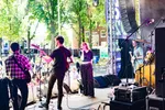 Door naar de carrousel, waar Pom al enthousiast staat te springen. Het is gezellig bij het kleinere podium en het groepje publiek lijkt zich uitstekend te vermaken. Pom is energiek en speelt toegankelijke indierock over alledaagse onderwerpen. Dat zangeres Liza van As door het springen en dansen de microfoon soms niet helemaal weet te vinden en niet alle noten haalt, hindert niet. Met het zonnetje in de lucht en een biertje in de hand geniet het publiek van de energie van het fuzzpoppende vijftal.
