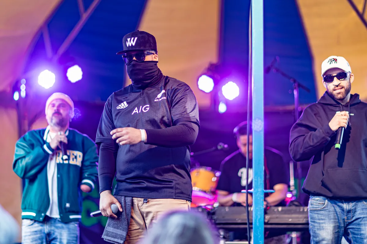 Producer Francis Locadia vraagt op het carousselpodium of Kaderock klaar is voor MOVNT OLYMPVS. Wat volgt is een wat tam applaus, het publiek is op zijn zachts gezegd niet massaal naar het derde podium van het festival getrokken om de Haagse supergroep te zien. Dat is zonde want voor de enkeling die wel bij het podium staat, is de show misschien wel het hoogtepunt van de dag. De wat ruimtelijke, gruizige beats in combinatie met de ijzersterke vocalen van Jojo Wavy, Ill Material, Ome Guus en Cobra (vroeger Clitbangers) zijn vanaf het eerste moment spot on. Daarbij is de energie van het vijftal ongekend, zelfs voor een mak groepje mensen wordt er kneiterhard voor gezorgd dat de show overkomt. Dit is ook de reden dat het optreden behoort tot de beste shows van het festival. Een festival waar MOVNT OLYMPVS misschien een vreemde eend in de bijt is en zeker niet matcht met het publiek, maar iedereen die de act niet heeft gezien, is zelf de verliezer.