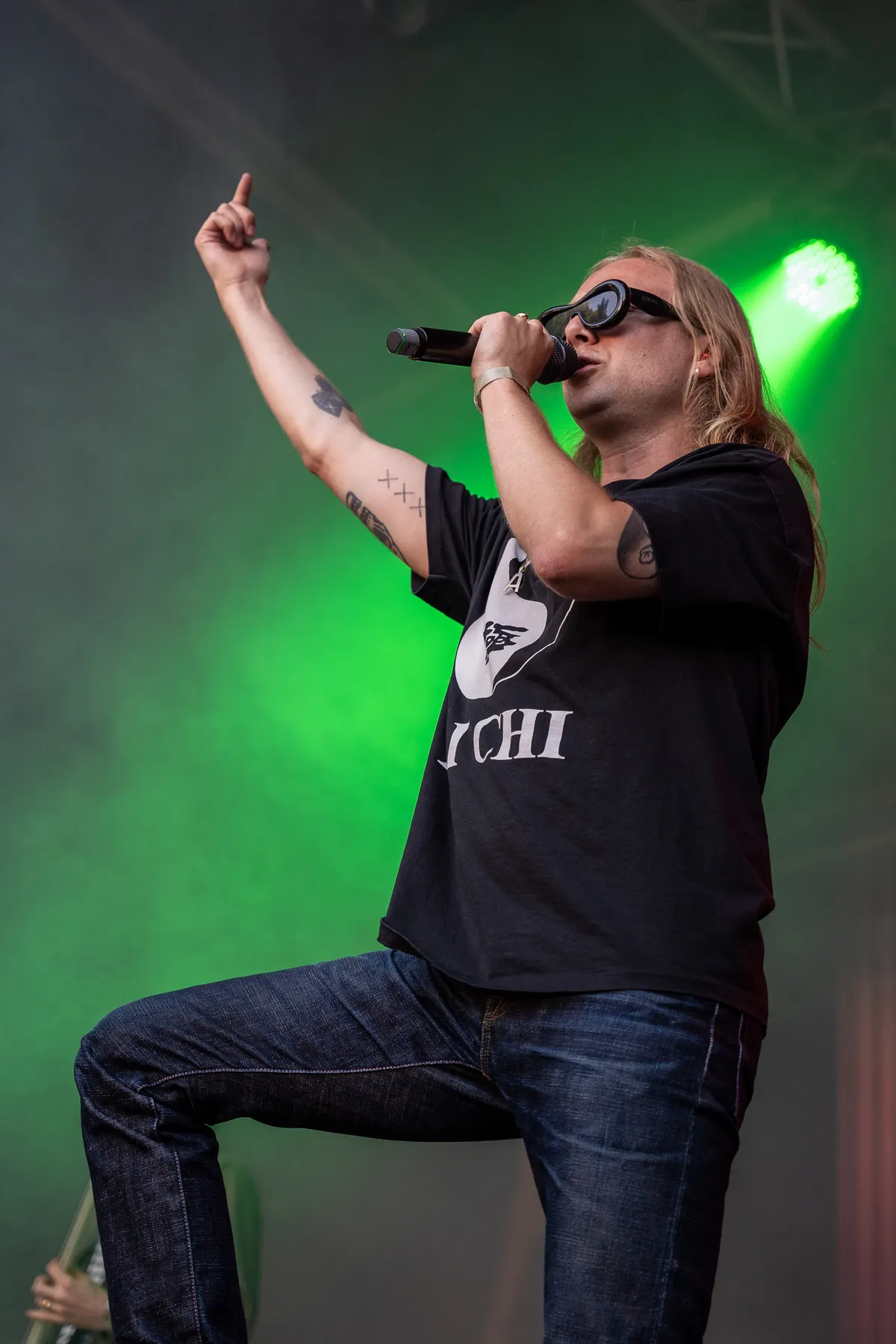 Op het hoofdpodium is het tijd voor Hang Youth, voor menig festivalbezoeker het hoogtepunt van de dag. De zon is achter het podium gezakt en de rookmachines staan volle bak aan. We zijn er klaar voor. “We hebben er vijftig voor jullie!” kondigt frontman Abel aan. En niets is minder waar; in de zestig minuten die ze hebben, belicht het gezelschap zijn antikapitalistische boodschap van alle kanten in korte geweldsexplosies die zes seconden tot anderhalve minuut duren. Het is zoveel, dat je nauwelijks tijd hebt om na te denken over hoe het muzikaal allemaal in elkaar zit. Als je dat toch doet, hoor je dat de bandleden weten wat ze doen.