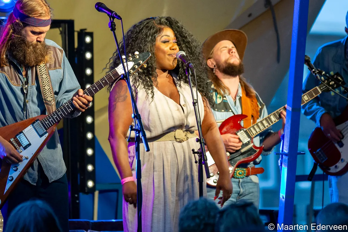 Na de uptempo reis met Henge moet het publiek even bij komen. Leif de Leeuw band zet een relaxte sfeer in met americana en southern rock vibes. Dat de Rijswijkse Leif de Leeuw acht keer op rij bekroond is tot beste blues-rock gitarist van de Benelux kun je van heinde en verre horen. Strak gitaarspel alom. In het eerste nummer delft de zang het onderspit, maar dat wordt later goedgemaakt. We begeven ons onder cowboys, in seventies en countrysferen. Er wordt meerdere keren van gitaren gewisseld door Leif de Leeuw. Het snaarinstrument kent geen geheimen voor de artiest. Zo wordt er in ‘Gumboman’ fantastisch gitaarspel gespeeld samen met de bassist, drummer en orgel. De band bestaat uit maar liefst zes leden. Het laatste kwartier komt er een special gast zangeres bij waarvan je je afvraagt waarom die er niet vanaf het begin bij is geweest. De vrouwelijke artiest heeft een blues stem met ongekende power die de luisteraar kippenvel bezorgt, vooral als de muzikant uithaalt bij de tekst: ‘We are one’. Aan het eind vraagt de blues zangeres: “Are you ready to rock?”. Er wordt knallend afgesloten door de Leif de Leeuw band en de zangeres.