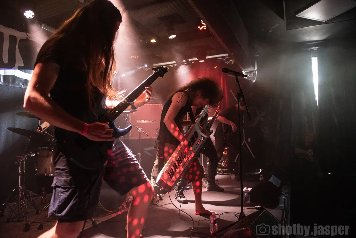Getooid met een keytar staat front Joris van Epistulum op het podium in de zaal. De melodische deathmetalband maakt de laatste tijd furore in Leiden en omstreken. Dat is ook te horen als de muzikant het publiek met een (hopelijk geveinsd) moddervet Leids accent toespreekt. Mede door de draagbare synthesizer en de vele gitaarlicks is de eerste associatie die bij het publiek opkomt er een met Dragonforce (je weet wel, die band met dat onmogelijke nummer in Ultimate Guitar), maar waar Dragonforce grossiert in muzikale leegte, lijkt dat bij Epistulum wat minder te zijn. Maar heel zeker zal het publiek dat nooit weten, want het geluid is gigantisch knudde. Een dikke brij aan decibels zonder enige nuance wordt als ware het een bakstenen muur op het publiek afgeschoten. Murw geslagen staat de zaal toe te kijken en te hopen op wat meer duidelijkheid en wellicht een glimp van wat de band zo populair maakt. Een van die glimpjes is de ritmesectie, want in die brij wordt geen beat gemist en lijkt alles keigoed op elkaar ingespeeld. Eeuwig zonde dat het niet overeind blijft, maar door deze ondoordringbare wand van bassen en een verdwaalde synth-hook is niet heen te werken.