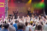 Bij Mula B leek dit best een groot podium. Bij de zeven koppige Blaudzun-band lijkt het te krap. Niet zonodig vanwege het aantal mensen, maar vanwege de powerperformance van elk bandlid, inclusief de koperblazer (trompet, sax…). Dat is een compliment voor Blaudzun. Leadzanger Johannnes weet goed het publiek mee te krijgen door in plaats van afgezaagde clichés erin the gooien (Kaderooooock hoe gaat het!!!) echt de interactie aan te gaan. Eerst moeten de zonnebrillen af, opdat hij ons in even in de ogen kan kijken. Dat niet klef laten zijn: bonuspunten. Wat later kondigt hij aan dat muziekkenners wel weten wanneer ze moeten springen bij het volgende nummer. Vragend kijken mensen naar elkaar terwijl Blaudzun inzet waarvan het referein begint met een luid Up! Halverwege 'Hey Now' maant Johannes ons door de knieën te zakken om bij het woord Up!, waar het nummer bol van staat, als een raket omhoog te schieten. We doen het, tot aan de achterste rij. Afsluitend 'Promises of no man's land' gaan de handen van het publiek in de lucht, wordt gesprongen, er gaat een strik om: klaar! blaudzun heeft de kade ingepakt met goede muziek en een klasse show. Wow!