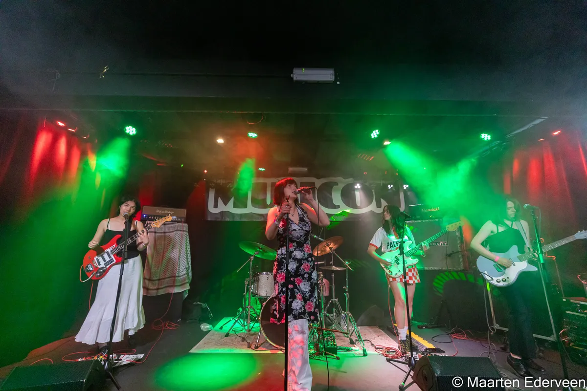 Volle bak, zoals eigenlijk alle bands op het binnenpodium wel op enthousiasme kunnen rekenen. Wellicht omdat we lang hebben moeten wachten om de half Haagse The Klittens weer eens in de Hofstad te zien. We gunnen Amsterdam en zelf het Verenigd Koninkrijk ook hun portie Klittens, maar moeten we dan echt zo lang droog staan? Katja, de gitarist met de grijze gitaar, trad nota bene voor het eerst op hier in Musicon, met een cover van Black Sabbath. Zeker stoer!