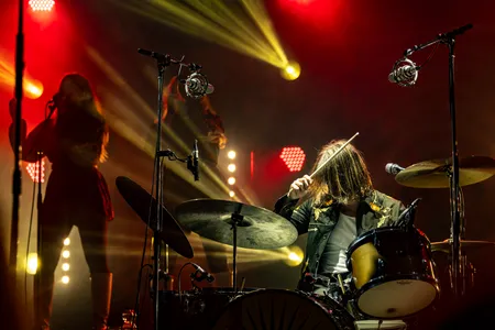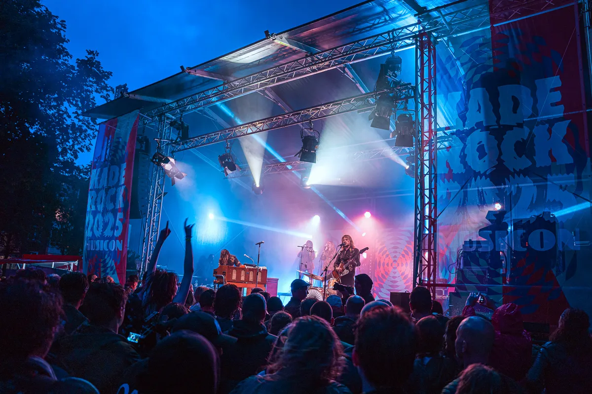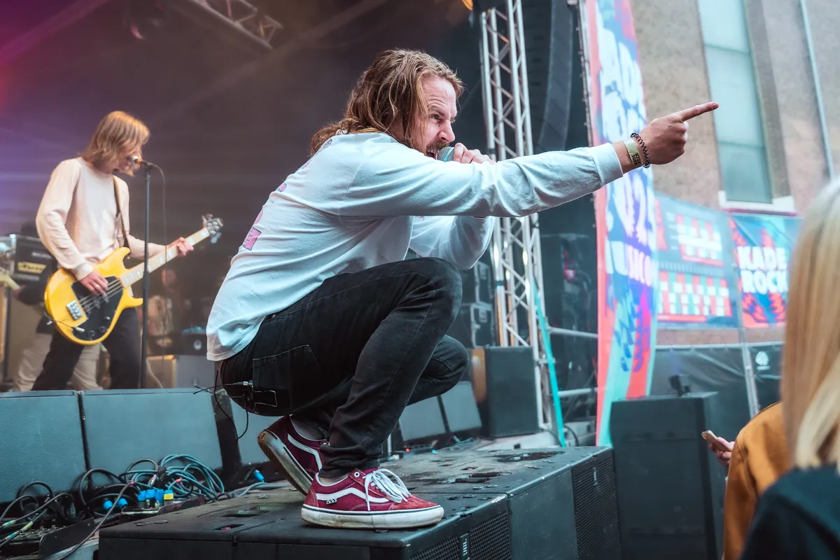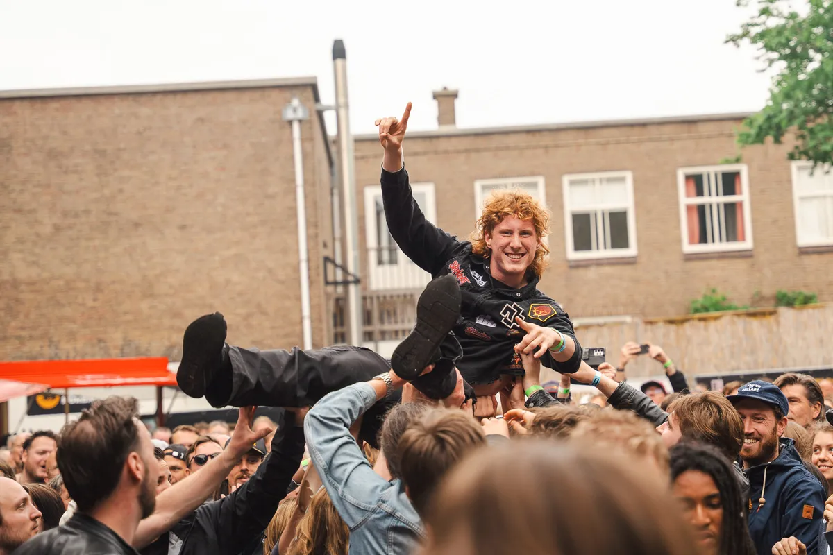 Later op de dag zijn het vooral de gitaren die de toon zetten op Kaderock, en de Wodan Boys leveren daarin een absoluut hoogtepunt. De band komt furieus op en binnen een paar minuten hebben ze het plein voor het podium in beweging. Voor frontman Thomas en gitarist Mikkie is dit optreden extra bijzonder: Kaderock was het eerste festival waar ze als kinderen naartoe gingen. Nu staan ze zelf op het podium en blazen ze de Soestdijksekade omver met hun compromisloze “loudmouth rock”. Hun sound is een gecontroleerde explosie van agressie en melodie — rauw, direct en onweerstaanbaar. De nummers van het nieuwe album Godspeed a Go Go worden enthousiast onthaald, waarbij vooral de publieksfavorieten als “Geezer Glamour Danger” en natuurlijk de klassiekers zoals “Bells” hard binnenkomen. Geen gelul, geen franje — de Wodan Boys spelen alsof hun leven ervan afhangt. En dat voel je zelfs als je binnen in de concertzaal staat.