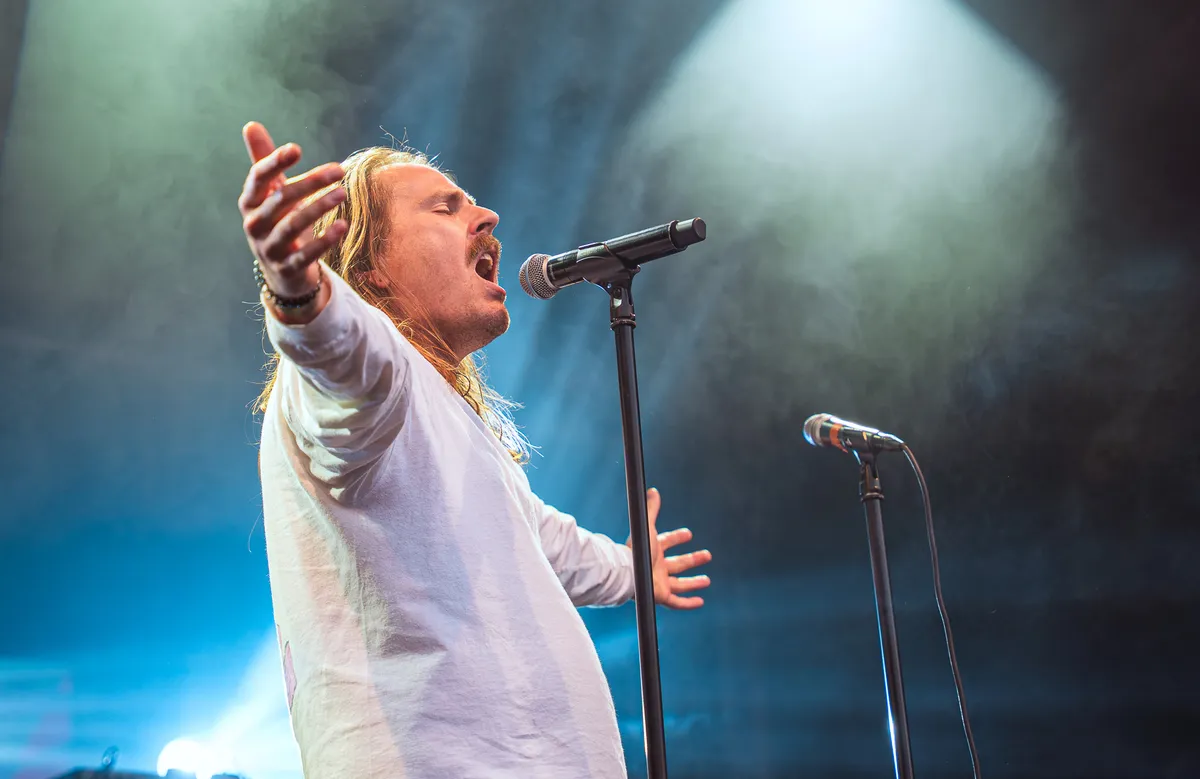 En dan blijkt, als we weer naar buiten lopen voor Jaïr Faria, de zon te zijn doorgebroken. De 21-jarige zanger gooit het tempo wat omlaag met gevoelige ballads en soulvolle liedjes. Dat hij het aandurft om het prachtige ‘Habibi’ van Tamino te spelen, laat zien dat hij niet bang is. Als de zanger zelfs de hoge noten waar het nummer mee eindigt haalt, ontwaren wij toch wat kippenvel. Een momentje van introspectie voor het muzikale geweld weer losbarst.