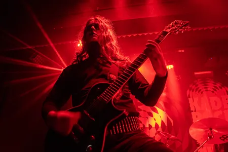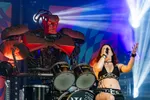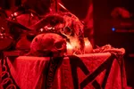 En dan is er Les Projets D’Athéna. Dat mensen al voor het optreden foto’s nemen, heeft een duidelijke reden. De drummer van deze band is namelijk een robot. En dat bedoelen we niet overdrachtelijk, in de zin dat er een drumcomputer op het podium staat. Er zit een vervaarlijk ogende robot achter een drumstel. Te drummen. En de robot begeleidt daarmee een zangeres, een gitarist en een hele hoop backing tracks. Nu moet gezegd worden: een drummende robot hadden wij nog niet eerder gezien en het is een leuke gimmick. Het kan echter niet verhullen dat de metal die het drietal maakt weinig spannend is. Wel grappig: de band komt uit Frankrijk, en als de robot het woord neemt om de mensheid te bedreigen - zoals robots doen - heeft ‘ie een Frans accent. De vraag die na een - drummer uitgezonderd - weinig opzienbarend optreden blijft is: wie ruimt eigenlijk het drumstel op?
