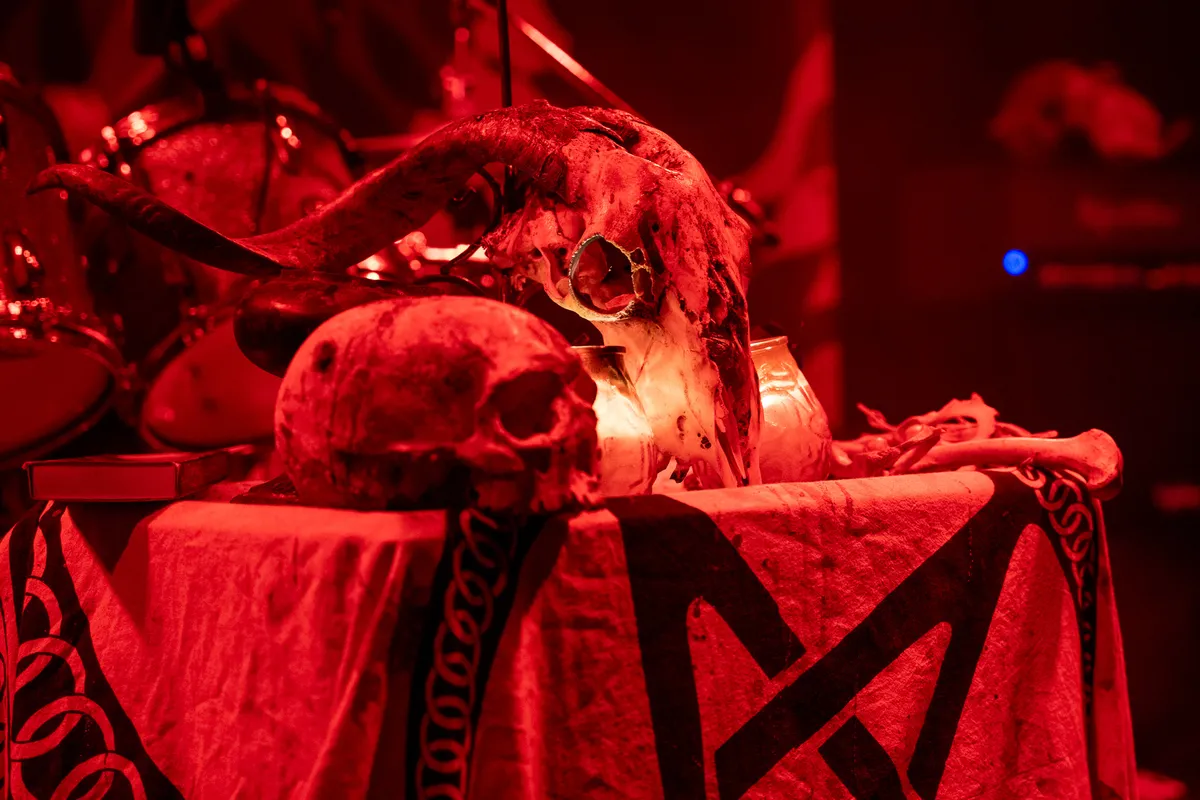 Afsluiter in de zaal Doodswens brengt de temperatuur tot onder het vriespunt met bijna drie kwartier aan kille black metal. Schedels van hoefdieren, een altaar en de geur van salie zetten de sfeer. Het drietal op het podium verzorgt de soundtrack, maar natuurlijk niet voor drumster en zangeres Inge van der Zon wat kaarsen aansteekt. We zijn hier tenslotte bij een ritueel. Muzikaal is het van dik hout zaagt men planken: retesnelle blastbeats, gillende gitaar en een krijsende zangeres die ongetwijfeld de duistere kanten van het leven of de dood bezingt. Black metal dus. Zo nu en dan haalt de band de voet van het gaspedaal, wat prettig is voor de afwisseling. Zo ontstaat een intens optreden dat de aandacht weet vast te houden.