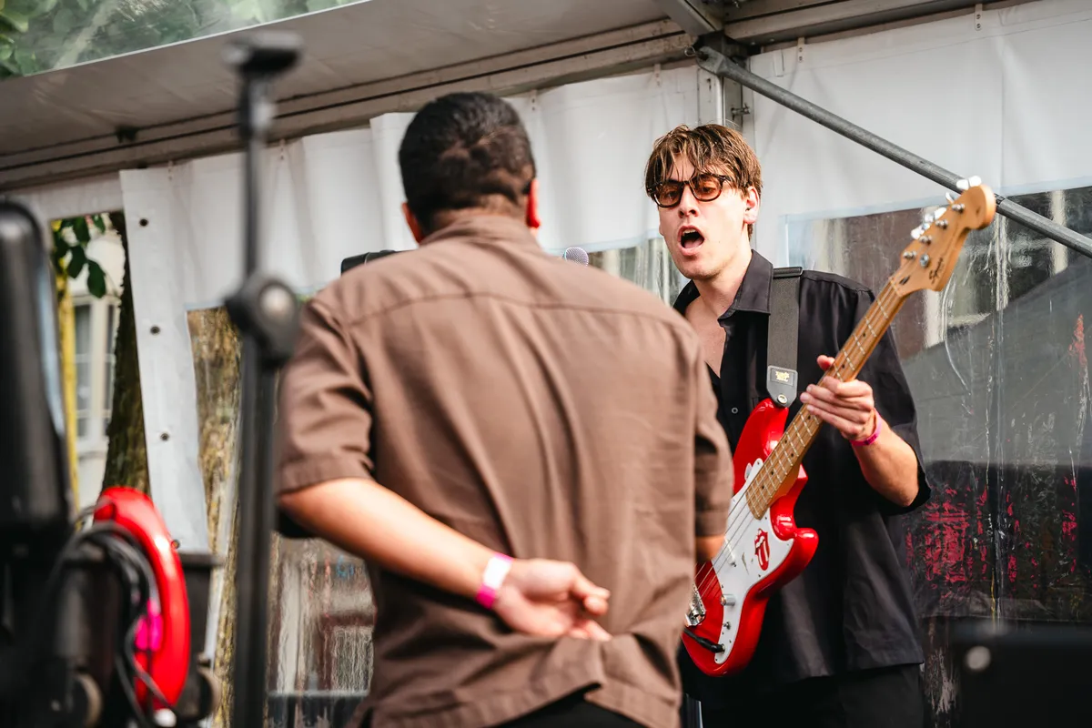 In de concertzaal van Kaderock staat Vals Alarm met volle overtuiging op het podium. De zaal staat tjokvol, tot op het punt dat er mensen vanuit de tuin van Musicon mee moeten genieten. Het trio benut elke centimeter van het podium, met zangeres Yanna die het publiek in de ogen kijkt en haar teksten eruit knalt alsof haar leven ervan afhangt. Vals Alarm brengt een mix van punk en pop die hard binnenkomt, maar ook meteen blijft hangen. De band zorgt voor een zaal vol springende mensen. Tussen de nummers door roept Yanna: “Wij brengen jullie die big dick energy!”, en niemand twijfelt daaraan. De band straalt lef, lol en confidence uit, en maakt duidelijk waarom ze op steeds meer line-ups te vinden zijn. Vals Alarm laat een blije zaal achter.
