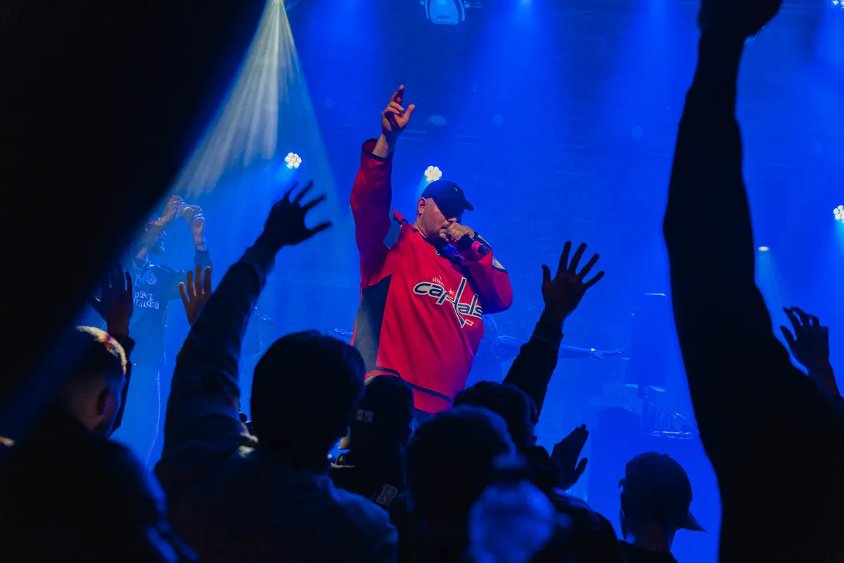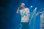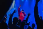 Dan is het tijd voor de man van de avond: $KEER&BOO$. De zaal is opgewarmd en klaar voor vuur. De eerste tracks knallen erin en het publiek rapt uit volle borst mee, alsof het album al maanden uit is in plaats van pas een week. Maar de show kent ook een moment van rust en bezinning. Deni ($KEER&BOO$) deelt dat hij recent iemand heeft verloren en heft een toost op hem met een schaal vol Hennessy-shotjes die aan de hele zaal wordt uitgedeeld. Iedereen drinkt mee en direct daarna barst ‘GET HIGH’ los – een nummer dat niet alleen keihard wordt meegezongen, maar ook symbool staat voor het toosten op overledenen. ‘Rest in peace’ klinkt meerdere keren door de speakers en het publiek voelt de emotie.