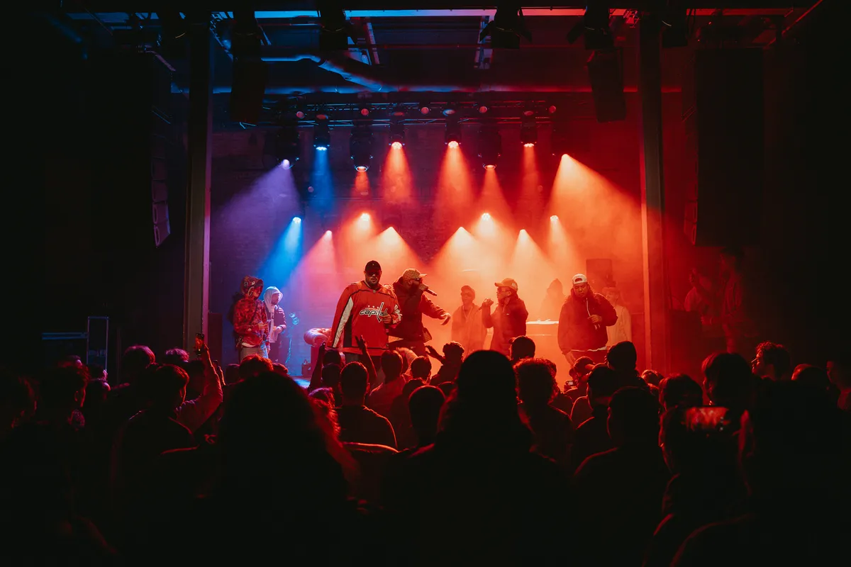 Als een echte koning spreekt hij zijn vertrouwen uit in de Maastrichtse PJ Scoolio, die inmiddels ook het podium betreden heeft: “Scoolio geeft mij het vertrouwen dat Limburg weer rapt,” zegt hij. “Hiphop komt uit het hart.” Dit is het zuiden, en het nummer ‘Southside op Stacks’ sluit hier perfect bij aan. Het slaat in als een bom: het hele publiek zingt mee, luider dan de stem van $KEER&BOO$, die zich helemaal gegeven heeft – zoveel enthousiasme, zoveel energie, dat zijn stem het op het einde bijna begeeft. Maar dat hoort erbij. Dit is geen optreden waar je spaarzaam omgaat met je kracht, dit is alles geven tot de laatste noot. Tegen het einde van de show is het podium weer gevuld met een mix van artiesten en vrienden, zoals we gewend zijn van dit collectief. Rafting Goods voelt als een grote familie, en dat blijkt hier opnieuw.