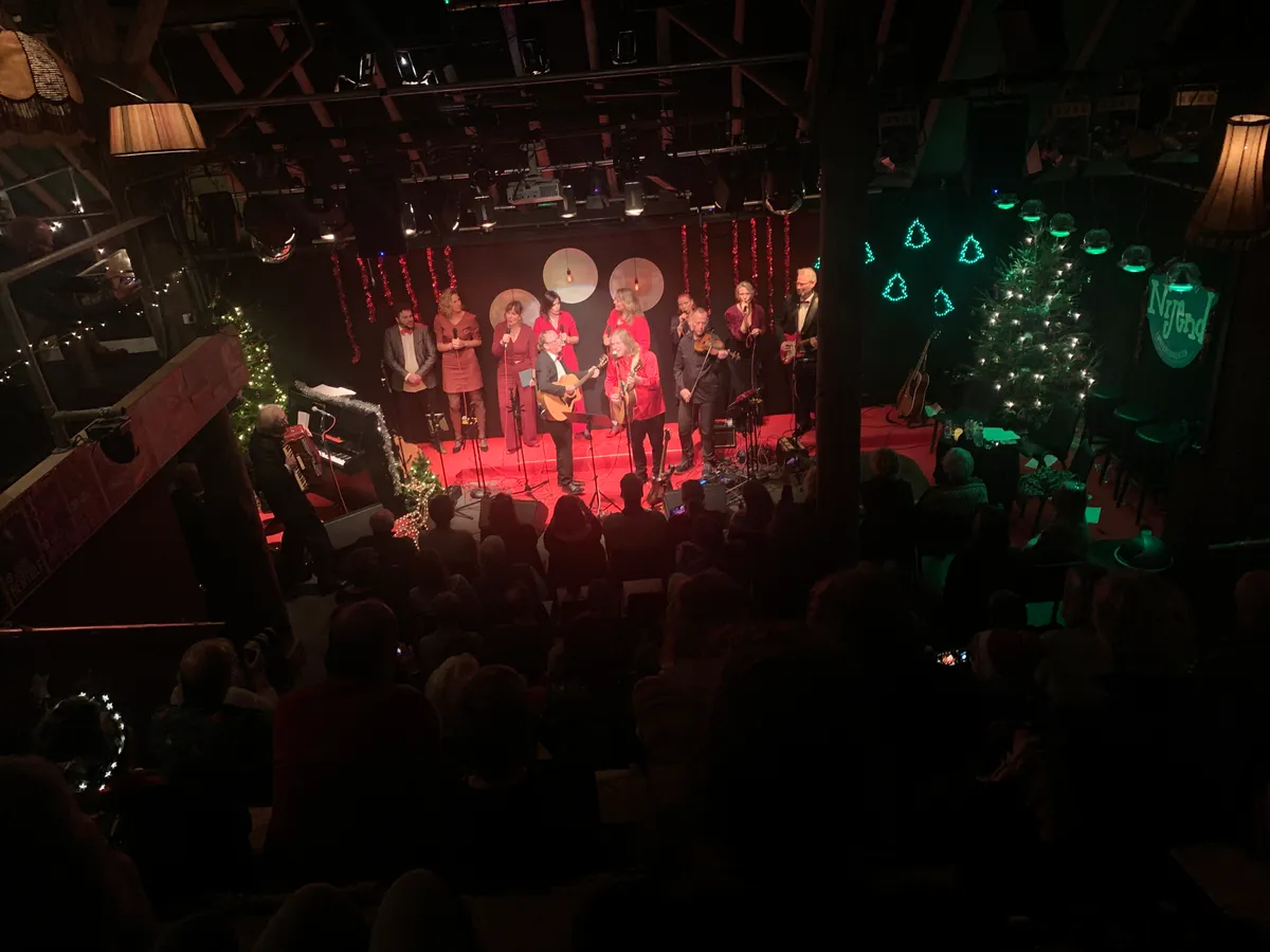 In de oude boerderij Nijend24 in Anderen, op de plek waar je normaal gesproken de koeien vindt, en tussen de oude balken die de boerderij overeind houden is een podium met tribune gebouwd. De boerderij is helemaal in kerstsferen aangekleed met slingers en kerstbomen. De ruimte is niet groot, maar voelt gezellig knus aan. Geen artiesten op een podium in de verte. Boven de entree is een kleine kantine gemaakt waar je tijdens het optreden een drankje kunt kopen. Deze avond is georganiseerd door Edwin Schimscheimer en Egbert Meyers, die ook als gastheer optreed. Verder doen mee aan het optreden: Jason Staal, The Christmas Sisters, Martijje, Heeren Oud-Zuid, Frank en Marlou van Essen, John & Nienke en Peter Krako.