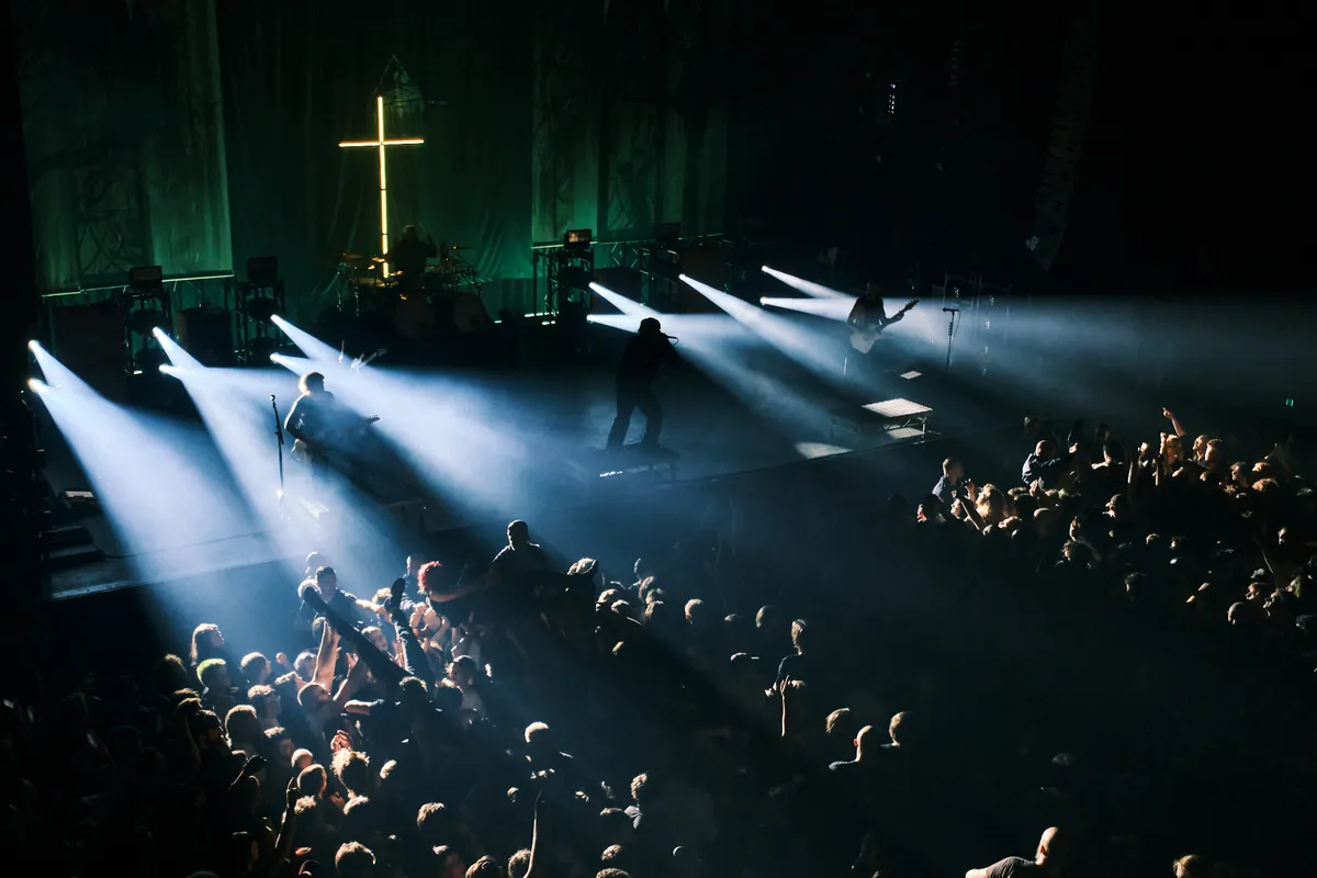 In het donker licht een bekend symbool op, onmiddellijk herkenbaar voor elke Knocked Loose-fan: het kruis van hun recente plaat You Won’t Go Before You’re Supposed To (2024). “1,2,3 Knocked Loose, motherfucker!” schreeuwt frontman Bryan Garris samen met de 3000 kelen, waarna 'Deep in the Willow' direct de zaal op zijn kop zet. Die intense connectie tussen publiek en band houdt de charismatische zanger moeiteloos vast: teksten worden gezamenlijk afgemaakt terwijl bandleden als bezetenen over het podium stormen, zonder ooit een kabel te verstrikken.