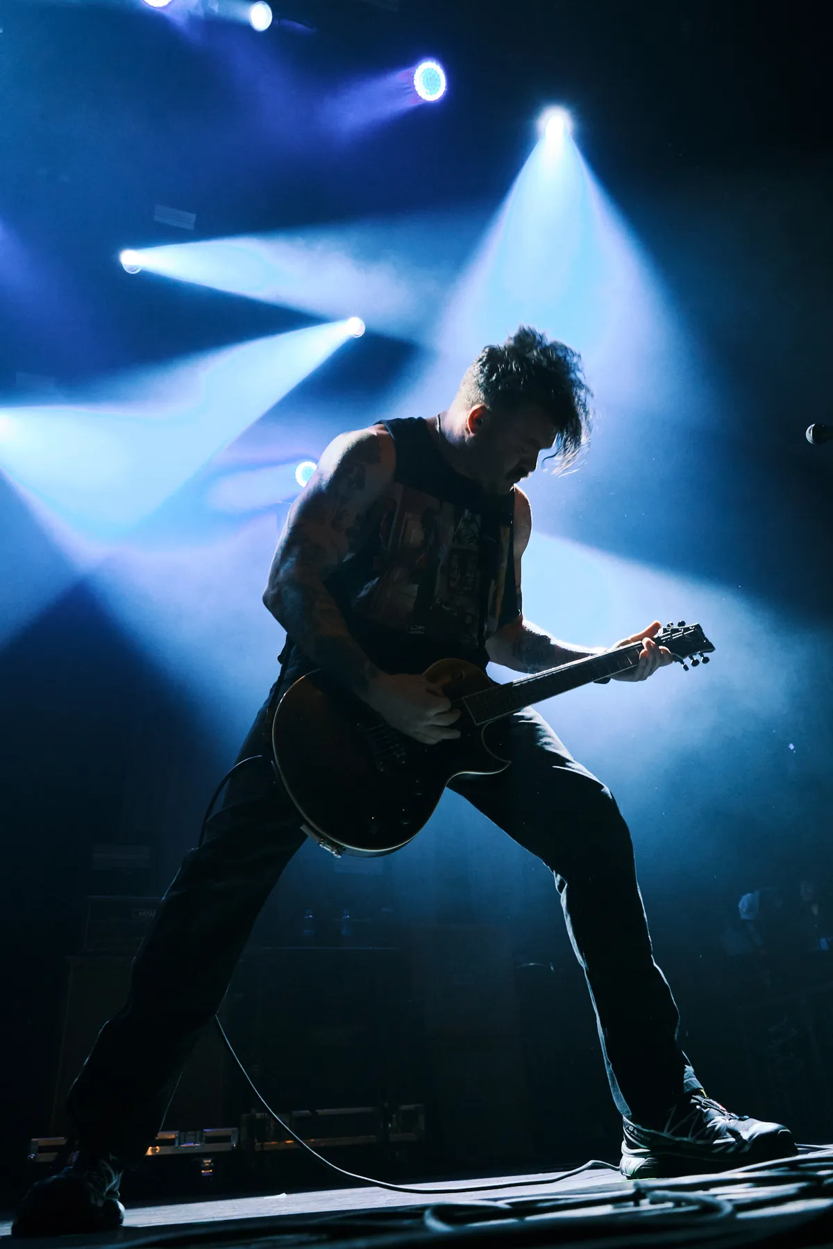 De explosieve drums, double-kicks sneller dan de stroboscopen, en loeiharde breakdowns die je niet alleen hoort maar in het diepste van je lijf voelt. De gitaristen leveren messcherpe riffs, haast onmenselijk snel maar indrukwekkend strak. Knocked Loose toont zich vanavond meester in timing en spanningsopbouw, vooral tijdens 'Suffocate', wanneer plotseling de hele band stilvalt en het podium afloopt. Alleen het zoemen van versterkers vult nu nog de ruimte, totdat ineens die bekende riff langzaam inzet, opbouwt, versnelt, en uitmondt in pure chaos.
