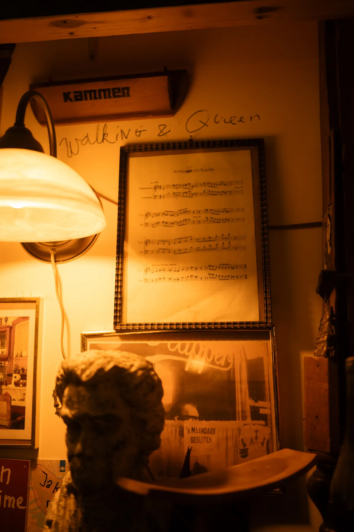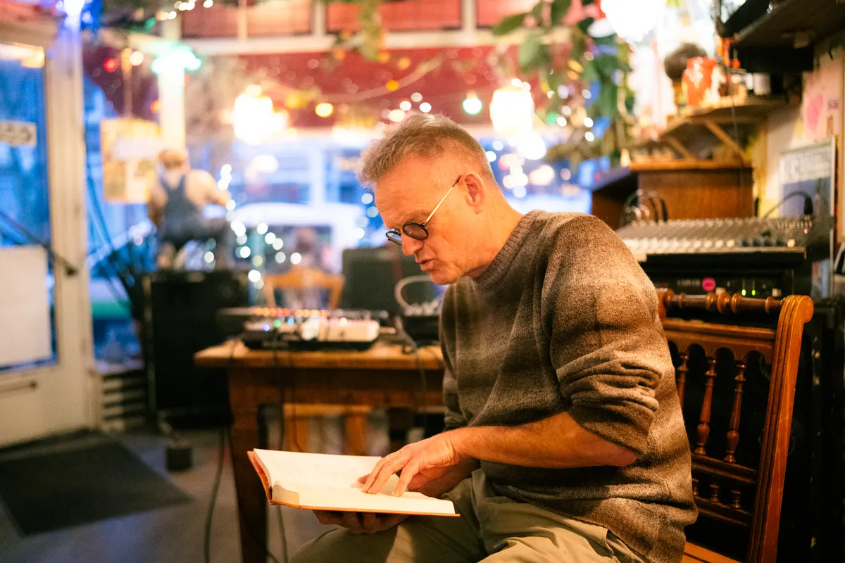 Wanneer we hem vragen over wat voor muziek je zoal in de bar kan horen, begint hij allerlei platen uit de kast te trekken. Een wirwar aan genres passeren de revue: van jazz en klassiek tot experimentele muziek, americana en folk. Allemaal artiesten die hier hebben gespeeld, en waar wij als redactie nog nooit van hebben gehoord. ‘Ik programmeer muziek die vrij is, vaak geïmproviseerd. Genres zijn niet belangrijk, het gaat erom dat mensen geraakt worden. Muziek moet je iets laten voelen. En het mag ook irriteren.’