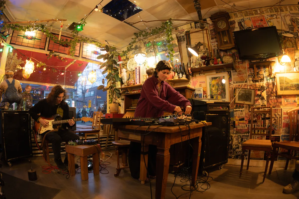 Wanneer muzikanten optreden, staan ze meestal bij het raam en verzamelt het publiek zich daaromheen. Op de concerten komt een mix van buurtbewoners en vaste klanten af, maar ook regelmatig mensen van ver buiten de stad. ‘Niet zelden zijn wij de enige plek in Nederland of zelfs Europa waar je een bepaalde artiest kan zien. Onlangs stond hier een Spaanse band met een grote achterban in Brussel. Hun fans kwamen massaal deze kant op om de show te zien.’