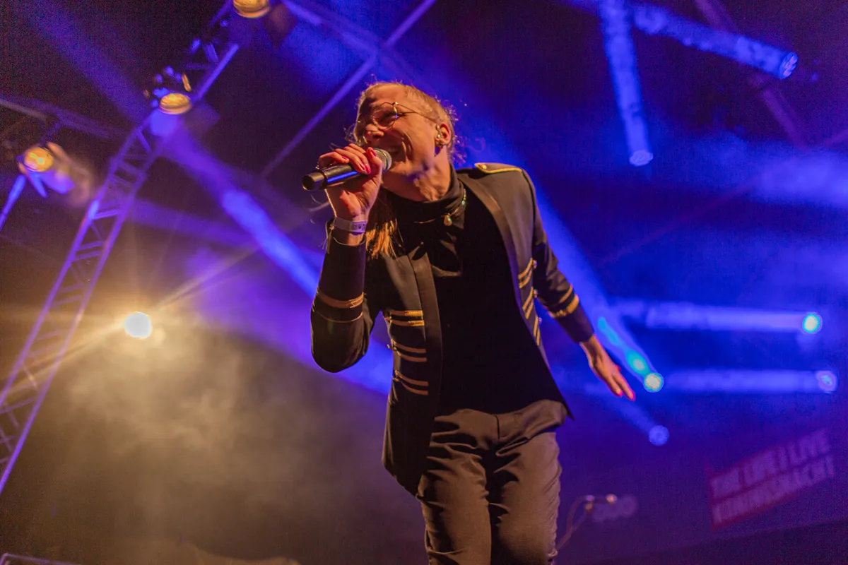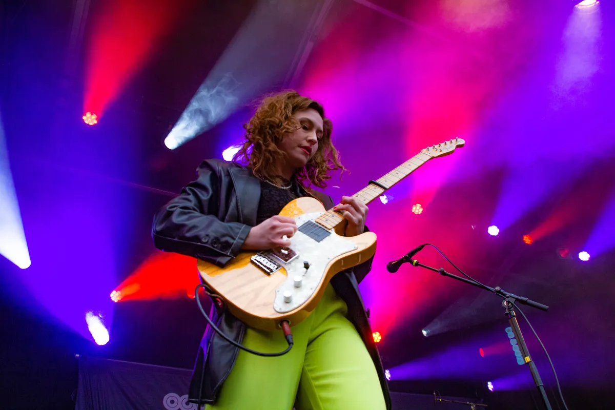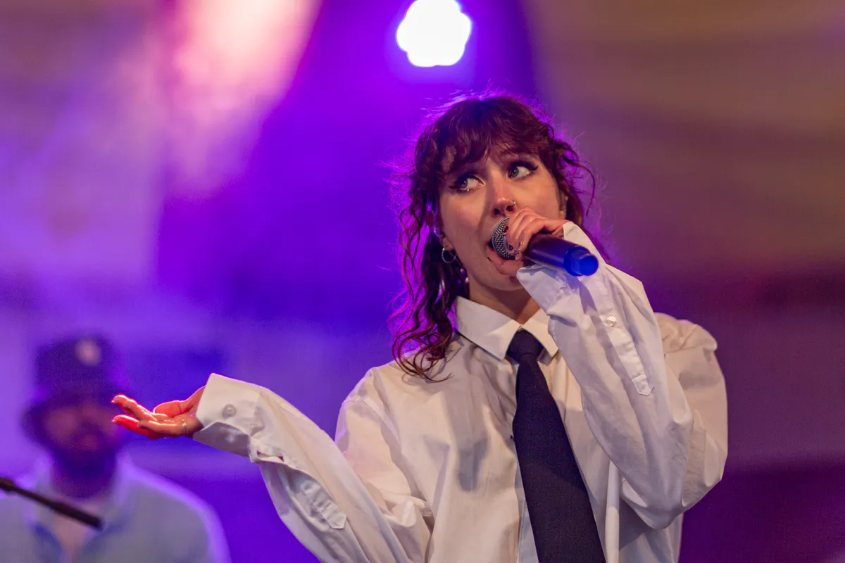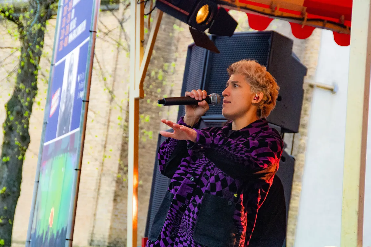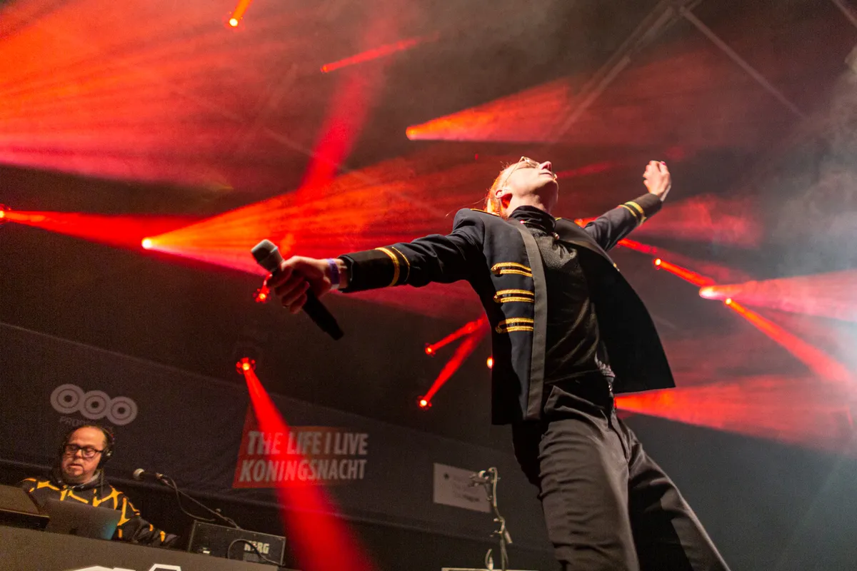 Klokslag 19:00 is het ook op de kleinere podia tijd voor de openingsact. Op het Noordeinde, de voortuin van de Koning, trapt Babs af met ‘Die/Hun’. Dat nummer nodigt meteen uit tot een duik in de bio van deze artiest, want persoonlijk voornaamwoorden doen ertoe. Queer rap en een enorme bak energie. Dat het toegesnelde publiek zo vroeg op de avond voornamelijk bestaat uit ouders en kinderen mag de pret niet drukken voor de Leidse producer/rapper-songwriter. Live komt er weliswaar een backingtrack aan te pas, maar zijn de drums, synth, bas en hype-man wel degelijk live – met de bijbehorende schoonheidsfoutjes. De teksten in nummers als ‘De Reflectie’ (“Wie zij zien ben ik dat wel?”) en ‘Milkshake’ (“Ik wil meer van dit”), Beetje Bi (“Iedereen is een beetje queer”) en AAA (“Ik moet horen dat ik er mag zijn, Voed mij, Ik ben een batterij”) zijn peak Gen Z en zitten ergens tussen spitsvondig en gemakkelijk. Gemakkelijk omdat Babs alle thema’s rondom zelfidentiteit en het doorbreken van hokjesdenken wel erg letterlijk bezingt. Sterk om het zo te brengen, maar na drie kwartier weinig afwisselend. De dansbaarheid zit dan weer wel goed en komt op de grotere podia tijdens warmere dagen zoals de aanstaande Bevrijdingsfestivals, Zwarte Cross en Pride in Utrecht ongetwijfeld beter uit de verf. We zien elkaar op 3 juni tijdens Kaderock.