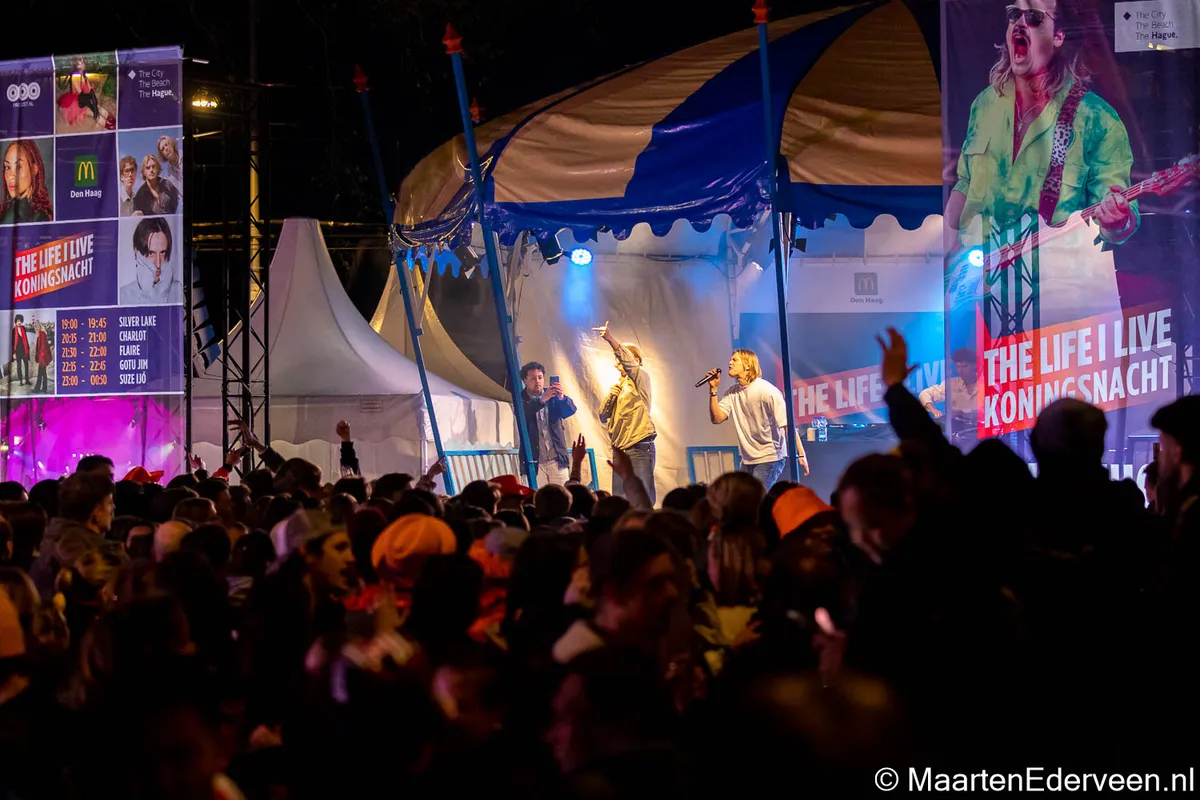 Het hoofdpodium van deze kleinere editie van The LIFE I LIVE staat deze koningsnacht op het Lange Voorhout. Aan het begin van de avond warmt DJ Prosciutto daar de boel op, en pak 'm beet vanaf WIES staat de statige straat vol. Een groot deel van het publiek is na het optreden van de band namelijk niet meer van het Lange Voorhout weg te slaan. Vergeet dat er andere podia zijn, hier gebeurt het. Zelfs tijdens het half uur dat tussen elke act nodig is om het podium om te bouwen, vermaakt de in oranje uitgedoste menigte zich. Koudste Koningsnacht ooit? Hier niet. Van Katy Perry's 'Firework' tot 'Noodgeval' van Goldband – ook met wachtmuziek is het hier feest.