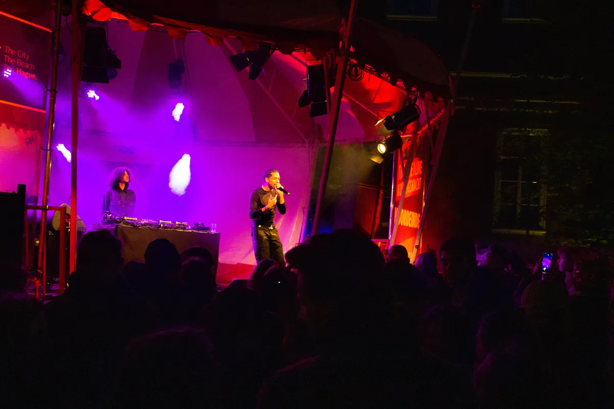 Attentie! Bij Noordeinde worden hapklare brokken bassige bangers geserveerd. sor pakt aanwezigen in met een flinke scheut autotune en immens lage klanken. De door klassieke muziek geïnspireerde rapper heeft een gehoorbeschadiging, wat resulteert in tracks met een geheel eigen frequentie. Het is altijd knap hoe iemand van een zwakte een kracht maakt. Vanavond valt sor goed in de smaak, ondanks contrast. Bij het piano gedreven ‘Voor Mij’ zien we cameralichten in de lucht zwaaien, terwijl ‘eastwest’ een aardeverschuiving teweegbrengt. Keihard bouncen en diep meeleven. Zowel vocaal gefocuste tracks als Voor mij' als complete bangers ‘hmm hmm’ worden meegezongen. Een fan brengt zelfs een hotdog naar het podium. Opzienbarend is het abrupte einde. Met een zachte stem kondigt sor aan: “ik ga nu die hotdog eten en ik moet naar andere show.” Het publiek wil overduidelijk meer, maar na een kort overleg krijgen we een kalme afwijzing: “de organisatie zegt nee.” Duidelijk.