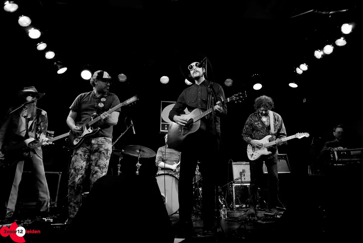 Garrett T. Capps komt uit San Antonio, de tweede stad van Texas, en daar maakt hij niet bepaald een geheim van. Zijn drie meest gestreamde nummers heten respectievelijk: ‘Born in San Antone’, ‘Goodbye San Antonio, hello Amsterdam’ en ‘I like Austin, but I love San Antone’. Mocht je hierdoor denken dat Capps vreselijk chauvinistische cliché-country maakt, dan heb je het bij het verkeerde eind. Dat wordt snel duidelijk als de zes bandleden hun entree maken: het bonte gezelschap lijkt eerder te zijn weggelopen uit een Hunter S. Thompson-roman dan uit de Grand Ole Opry. Met name Capps is een opvallende verschijning, met zijn kenmerkende montuurtje dat zijn ogen verandert in twee gapende zwarte gaten. Als we op het podium dan ook nog eens een modulaire synthesizer zien waar een enorme wirwar aan draden uitsteekt weten we het zeker: vanavond gaan we geen doorsnee country horen.