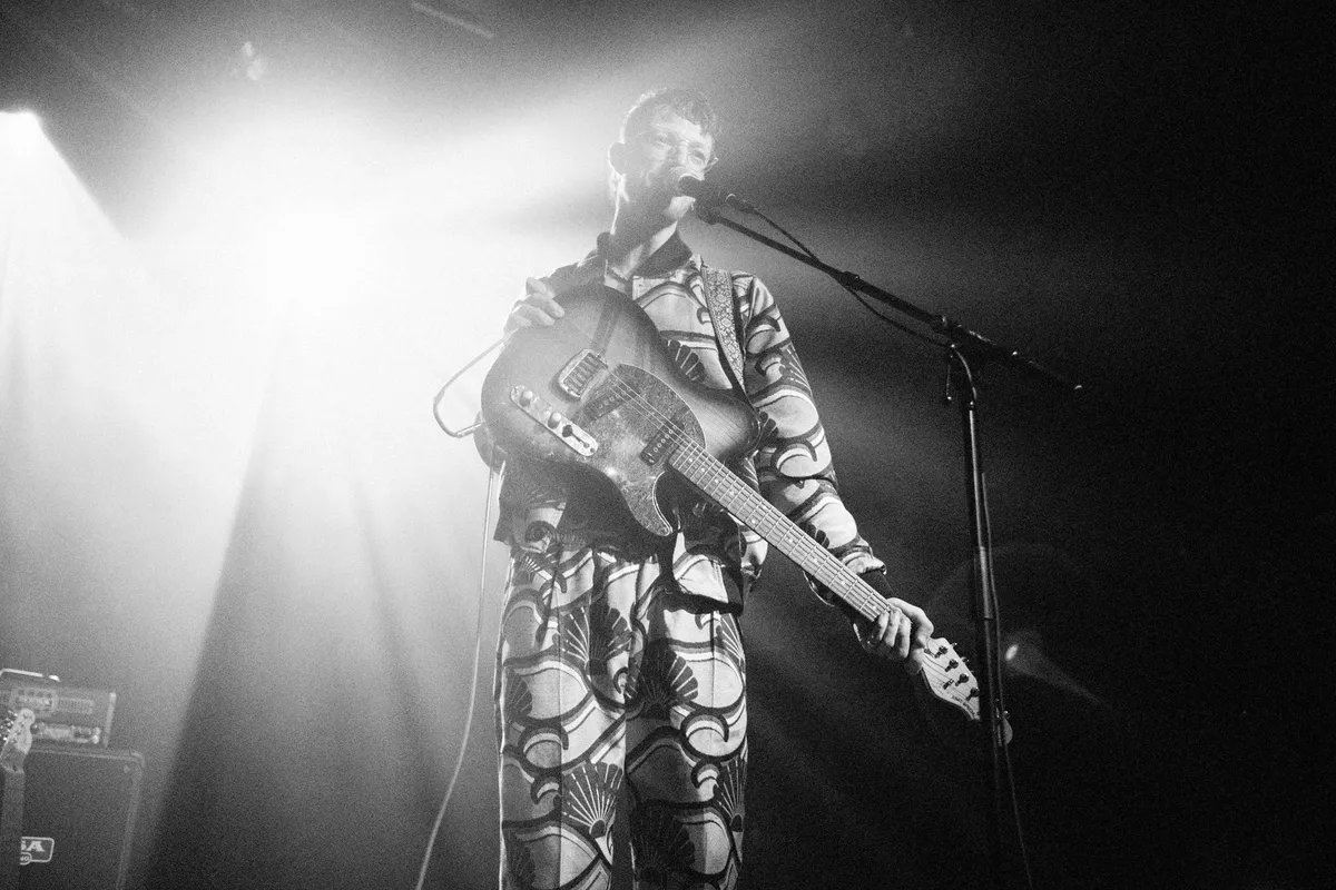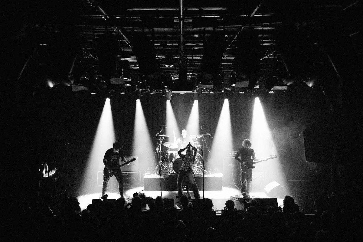 Na de rookpauze start KRAM. Ook hier begint het optreden met een bandopname waarna de leden opkomen. Vier rockende jochies zetten een dijk van een nummer in met vet slickgitaar, flitsende riffs en branie in de zang en optreden. Hun energieke en dynamische inzet slaat goed aan, ze krijgen moeiteloos het publiek mee. Dat zanger Tristan Gilligan van Ierse komaf is en hoewel al lang in Nederland leeft, maakt dat de sound wat Britpop aandoet met zelfs wat Fontaine DC klankkleuren. Ze zijn verre van een kopie en het is eerder een aangename associatie want Kram weet een eigen hyperenergiek rock geluid te brengen dat staat als een huis. De jongens bestaan amper een half jaar in deze setting en leveren een mini-concert af dat indrukwekkend te noemen is. Met een wat langzamer nummer komt de oproep tot vrede in conflictgebieden, en weet de zanger met zijn microfoon het publiek direct aan te spreken op vloer. Zo doorbreekt hij de vierde wand. De lef en de branie spat af van het optreden waarbij alles klopt. Tristan verwijst nog naar zijn overleden vader die in de naam van de band zit maar dan omgedraaid. Kram is een ode van zoonliefde voor vader Mark die op deze manier de eeuwigheid wordt ingeslingerd. ‘Mark for ever.’ Plannen voor een eerste EP zijn in ontwikkeling. 'Bring it on guys'.
