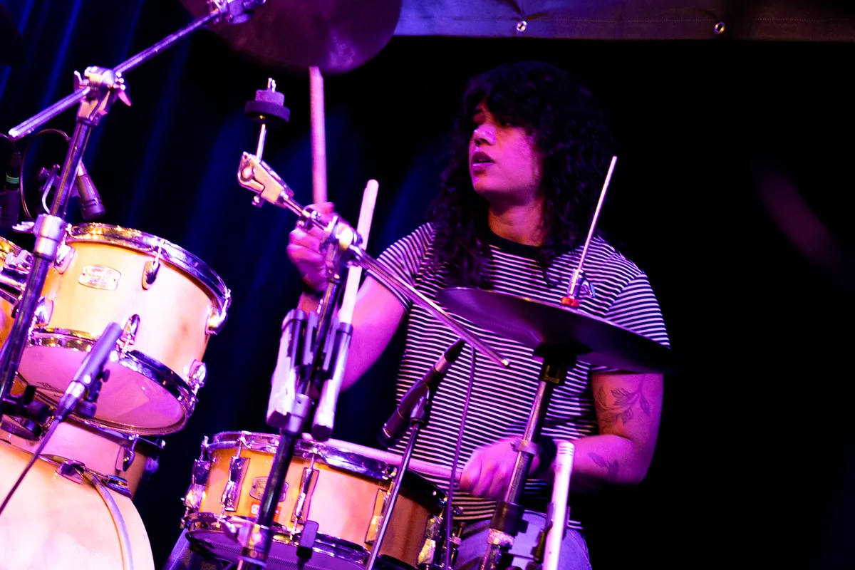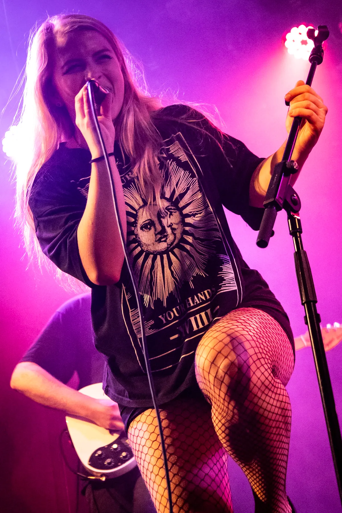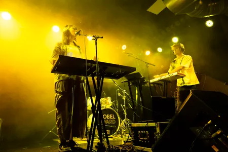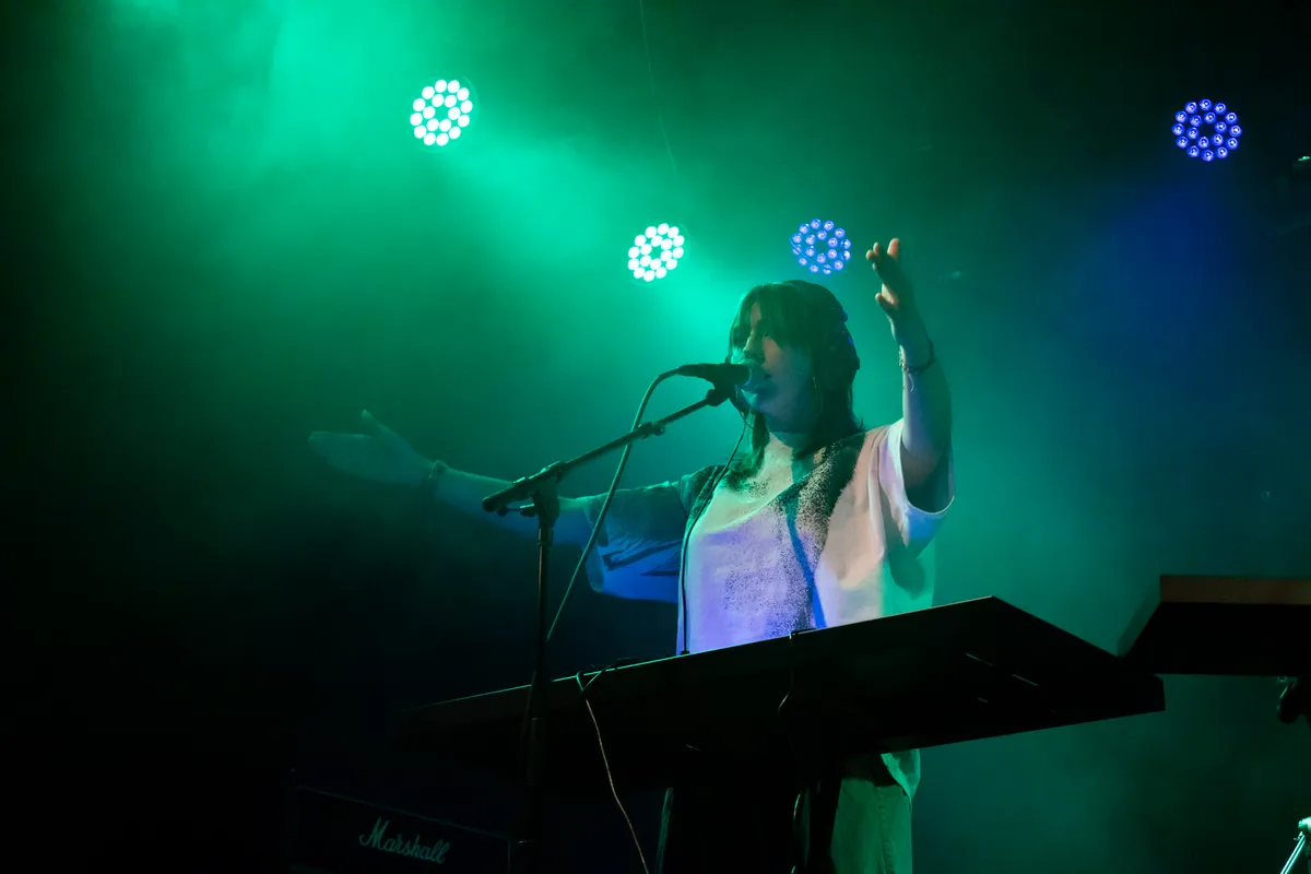 Gebrek aan ervaring lijkt bij de tweede act van de avond een stuk minder een rol te spelen. In rap tempo wordt het podium volgebouwd met een stapel synthesizers en pads. Dat NEBULA goed over hun set-up heeft nagedacht is wel duidelijk. In het eerste nummer bezweert zangeres Ymke de zaal door in een microfoon te fluiten, wat vervolgens door een hoop effect wordt vervormd tot een buitenaards geluid. Ook speelt ze live allerlei vocal-, synth- en drumloops in. Samen met gitarist Rik, die uiteraard ook een synthesizer heeft, en wiens gitaar maar zelden echt als een gitaar klinkt, weeft het duo een gedetailleerd sonisch tapijt, wat een beetje neigt naar de elektronische artpop van FKA Twigs en Billie Eilish.