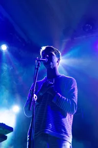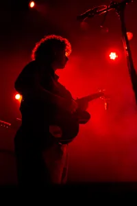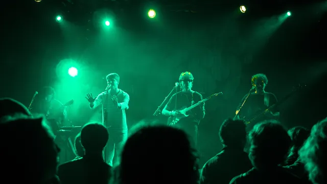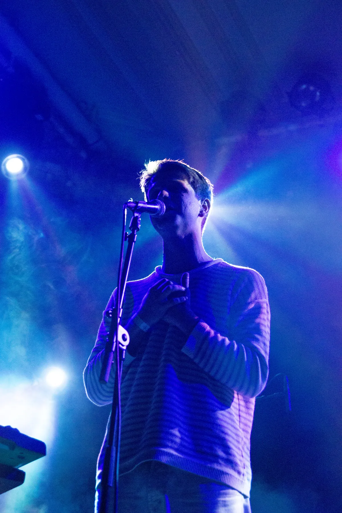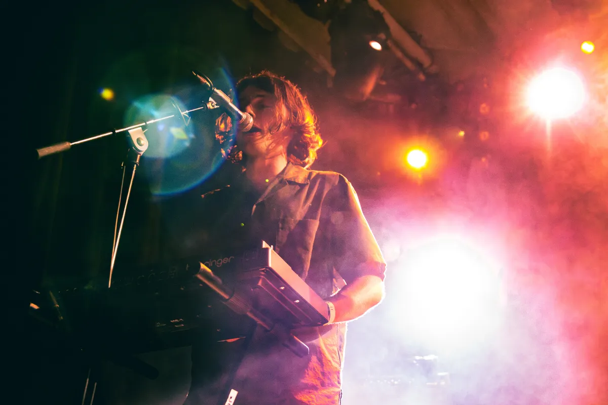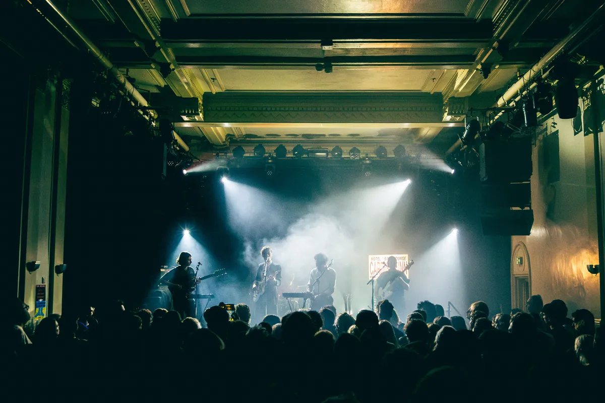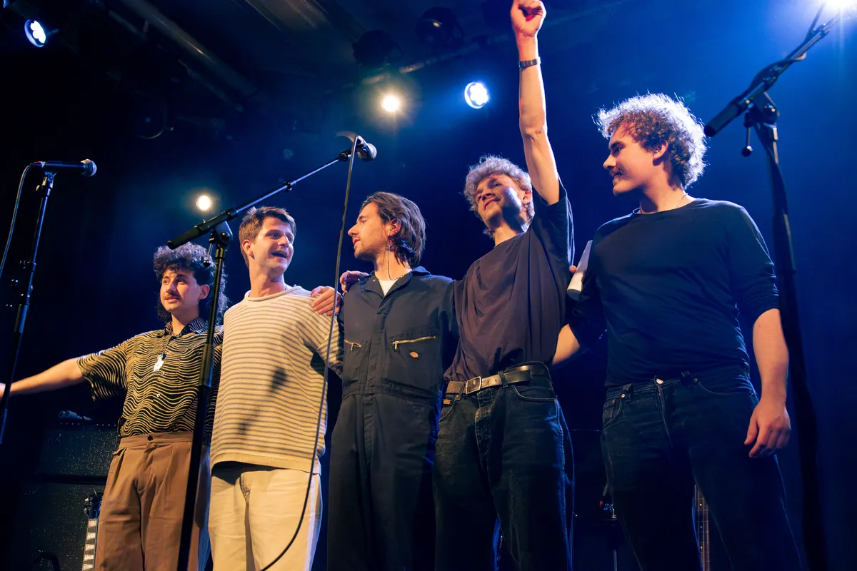 Nog voordat de vijf bandleden opkomen, voel je hun aanwezigheid al. Op het podium staat een lichtbak met hun interpretatie van ‘Cardigan Inn’: een taverne die dag en nacht open is en meer herrie maakt dan ooit tevoren. Dit soort details zijn niet zomaar decoratie, ze versterken de beleving van de act. Liedjes die gaan over de mystiek van het digitale leven lijken zo meer fundament te krijgen, terwijl hun samensmelting van analoge warmte en moderne productie organisch op zijn plek valt.