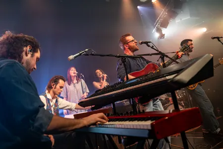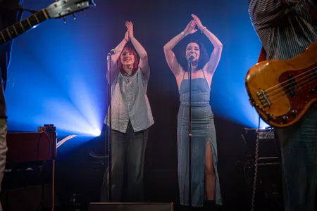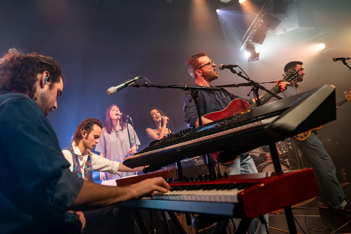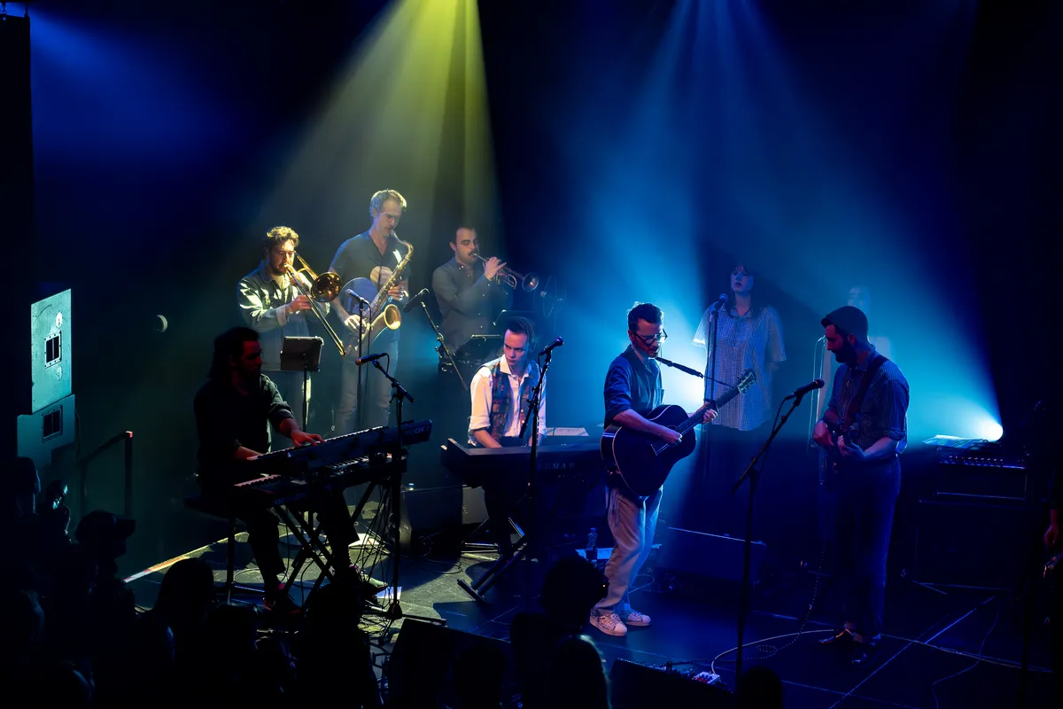 Folkduo La Nique werkt op dit moment aan een nieuw album dat volgend jaar verschijnt. Maar vanavond vieren ze de release van hun meest recente EP ‘Laughing About The Rain’, in een XL-bezetting en met een goedgevulde zaal met fans die er duidelijk zin in hebben.