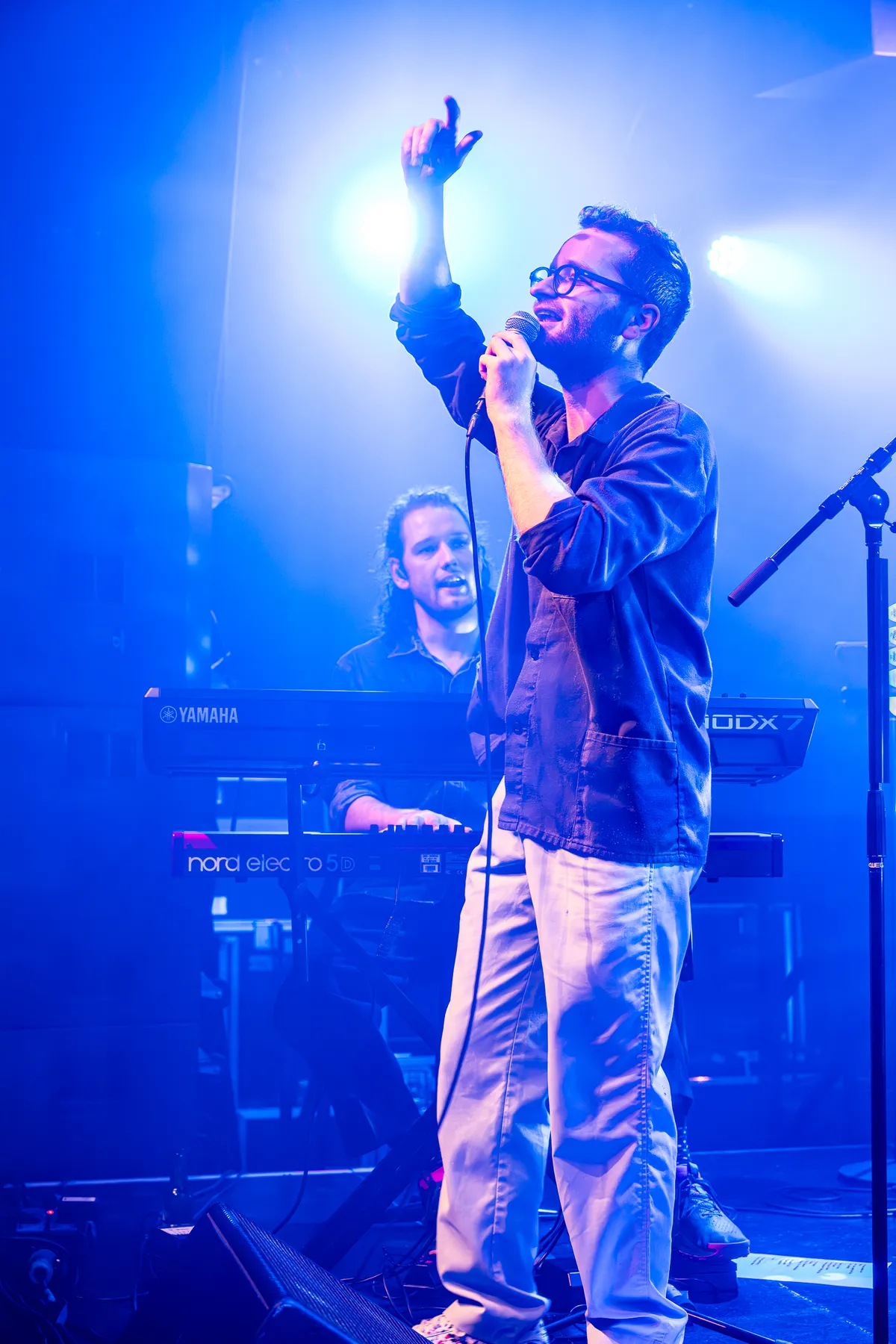 De band start met de inzet van Indigo en als de twee heren hun entree op het podium maken, is dat onder luid gejoel van het publiek: de sfeer zit er meteen goed in. Het nummer heeft een fijne drive en een prima sax-solo. De stem van frontman Laniek komt op dit volume echter wat scherp over en de backing vocals zijn nauwelijks hoorbaar – uit het geconcentreerde gezicht van een van de backingvocalisten en de constante vinger in één oor valt wellicht op te maken dat zij ook zichzelf niet goed hoort. Dat verandert allemaal niet tijdens het rock ’n roll-achtige Lover I’ve Yet To Find en ook tijdens het overgrote deel van de rest van de show blijkt dit een gegeven, helaas. Het publiek lijkt het niet te deren, dat danst inmiddels lekker mee.