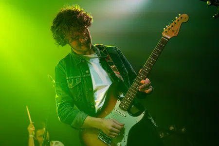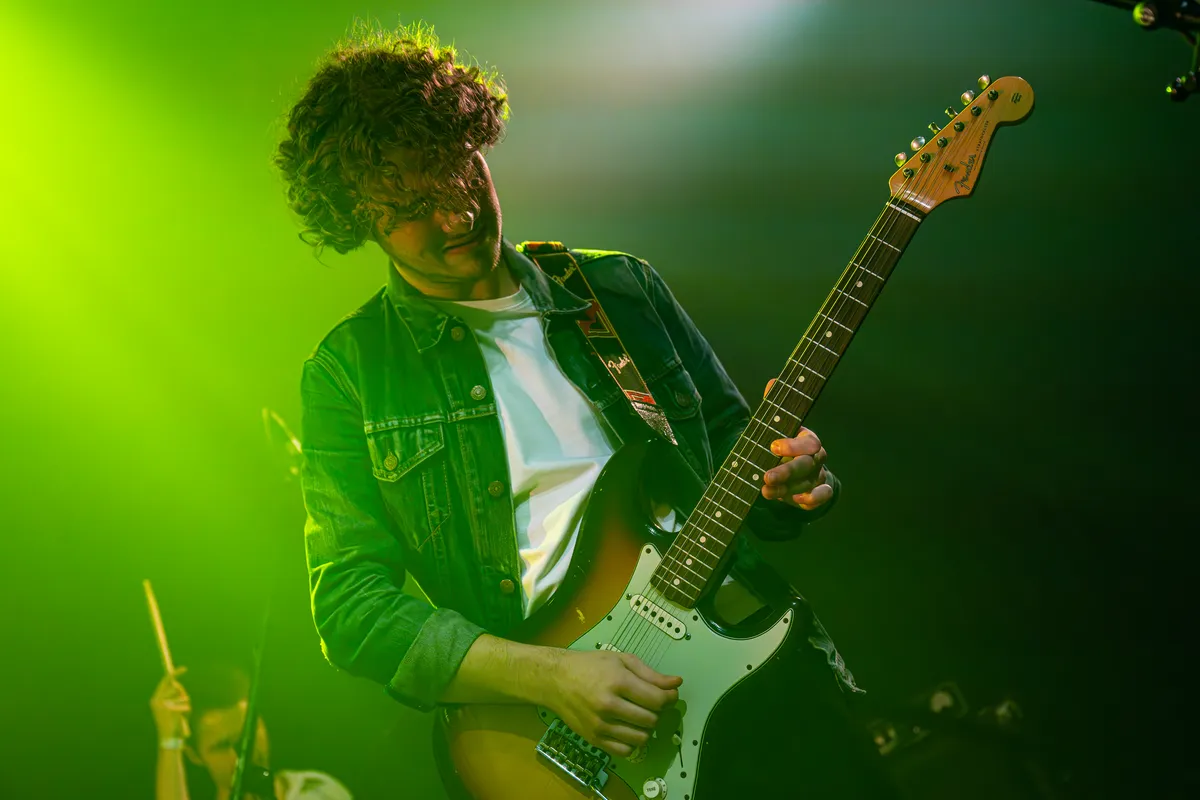 Na het vrolijke Oh So Long, waarin bassist Sem er heerlijke basloopjes uitgooit op zijn vintage Fender, is het tijd voor Closer To You, het nummer waaruit de EP-titel Laughing About The Rain’ afkomstig is. De band zet een mooi intiem sfeertje neer, waarin de stem van Laniek meteen ronder klinkt en prettiger overkomt. Het nummer kabbelt voort en wordt gevolgd door het eveneens subtiele Lost At Sea. Deze combinatie lijkt de mensen achterin de zaal niet echt te raken, want daar wordt volop door de muziek heen gepraat. Met Driving Too Fast wordt weer een tandje bijgeschakeld en Feeling Good Feeling Fine (met fijne walking bass) wordt luidkeels meegezongen door de fans, die uit hun dak gaan bij synchrone high kick van Laniek en Sem.