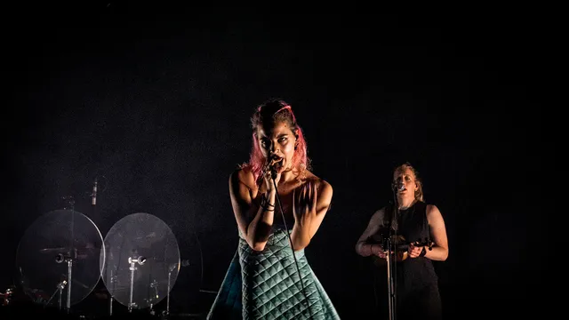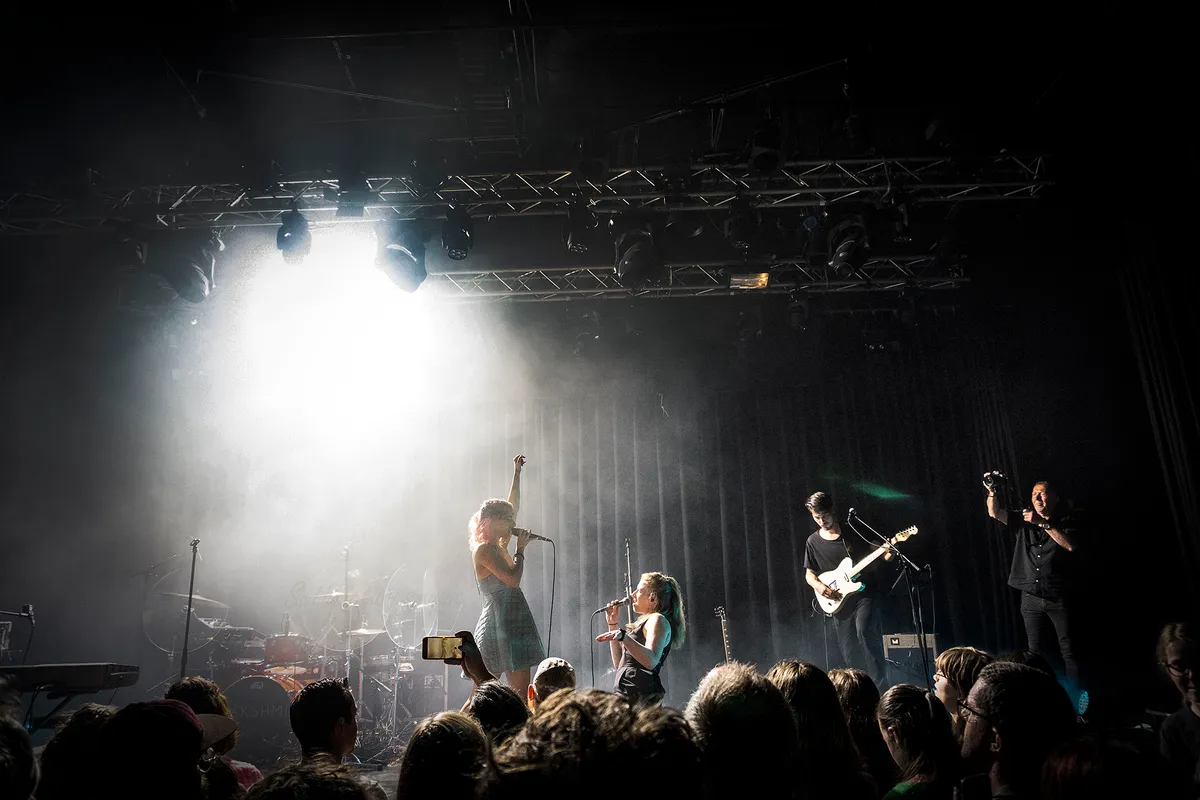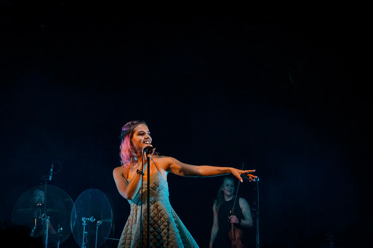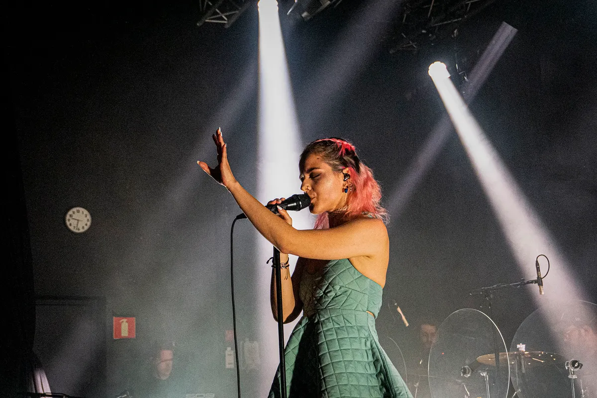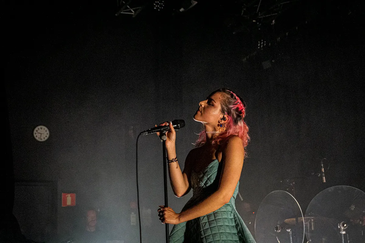 “Kom eens dichterbij”, zegt de zangeres, waarna ze na de eerste paar nummers op de rand van het podium gaat zitten. “Ik heb de zweetgeur van vreemden gemist, nooit gedacht dat ik dat zou zeggen.” Die zweetgeur komt van een gemengd publiek, bestaande uit ouders met hun kinderen, twintigers en 50+’ers, dat zachtjes nog iets dichterbij kruipt. Even een praatje maken. Niet veel later kruipt de zangeres achter haar piano en verzoekt iedereen hun zaklamp aan te zetten voor het nummer ‘Northern Sky’. Eén fan had dit moment allang zien aankomen en heeft voor aanvang van de show alle mensen die op dat moment aanwezig waren voorzien van glow sticks. Met gestrekte arm staan ze klaar, tot grote verrassing van LAKSHMI. “Het is een lang nummer, dus houdt vol. Als ik zie dat er kramp ontstaat zal ik sneller gaan spelen.”