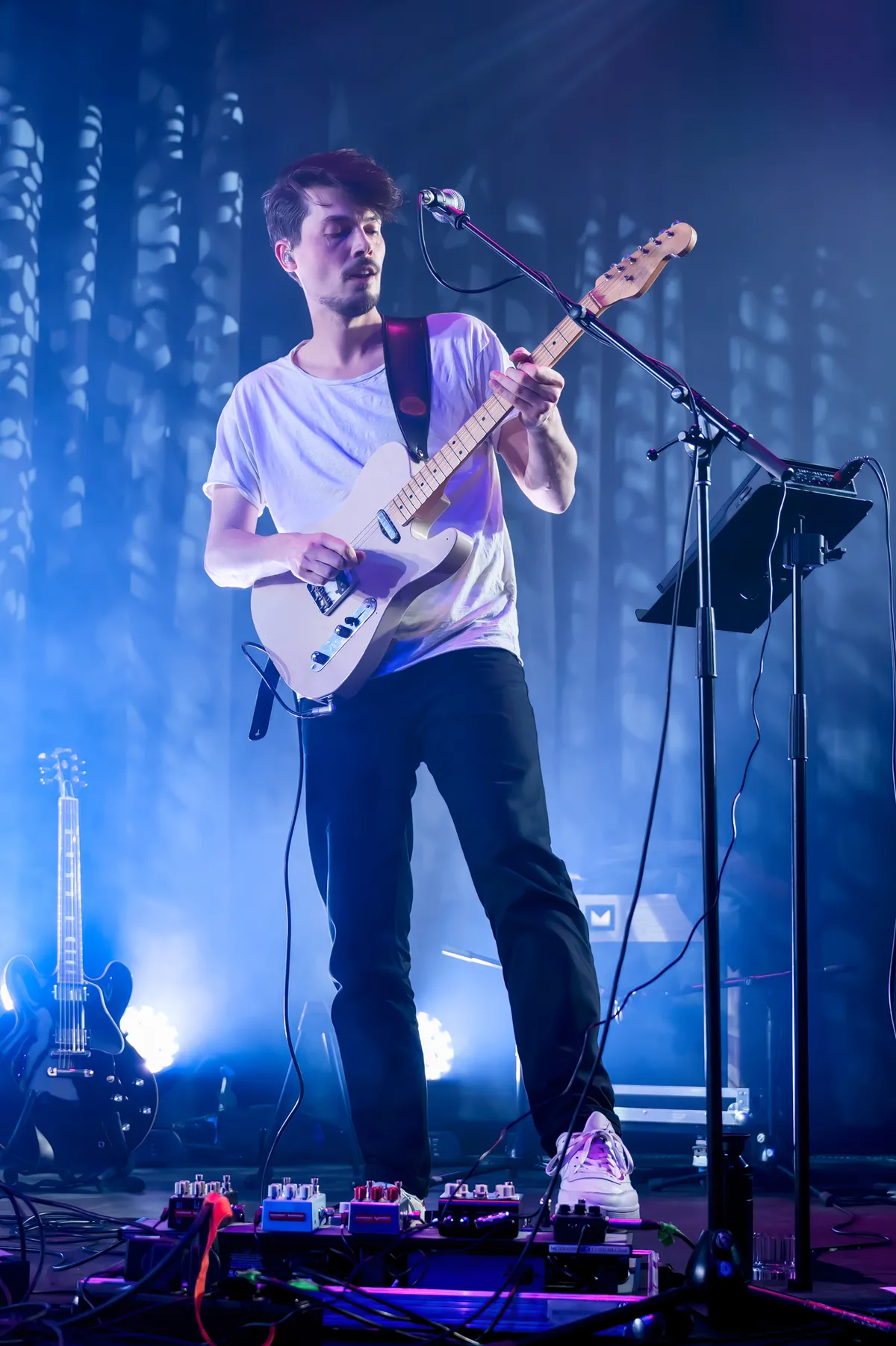 Hoewel gitarist Pascal Voorbraak net zoveel beweegt als de gemiddelde bassist van andere bands, is zijn spel er niet minder om. Met een keur aan pedalen geeft hij zijn gitaar soms futuristische geluiden mee die het optreden naar een heel nieuw niveau tillen.