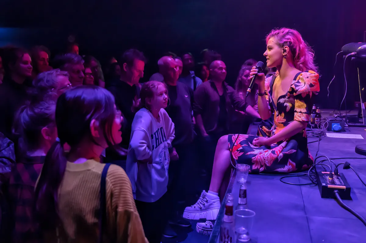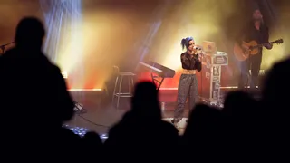 Tijdens ‘Northern Sky’, de enige keer dat Lakshmi zichzelf begeleid op het keyboard, vraagt ze het publiek om de lichtjes van hun telefoon te ontsteken en aldus de sfeer te verhogen. “Jammer dat er nu niet iemand is die hier een mooie foto van maakt,” zegt ze, zich er niet van bewust dat 3voor12 Gelderland fotograaf Rob al het podium opgekropen is om juist dát te doen.