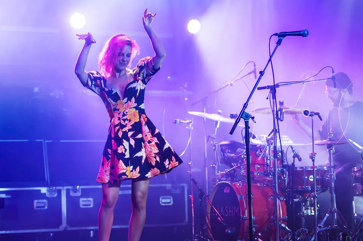 Lakshmi, eigenlijk de naam van de band rond zangeres Lakshmi Swami Persaud, danst zoveel ze kan over het podium heen. Soms zelfs zoveel dat ze het publiek even aan het woord moet laten om op adem te komen. Er komt een keur aan nummers voorbij, vanavond. Oudere, zoals ‘Ahaa’ of ‘Nowhere to Go’, gloednieuwe, zoals ‘Sun Into Colour’ en covers, zoals ‘I Touch Myself’. Wat echter schittert door afwezigheid, juist vanavond, juist hier in Nijmegen, is het nummer ‘Goffertpark’ dat Lakshmi schreef, samen met twee anderen, voor het programma Troubadours van Omroep Gelderland.