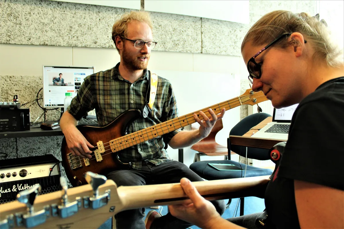 Gevraagd naar een advies voor iedereen die wil beginnen met het bespelen van een instrument, zegt Max: “Ga gewoon beginnen! Mocht je huiverig zijn om meteen op les te gaan, bekijk dan eerst een paar filmpjes op YouTube. Daar staat echt van alles op. Als je het dan nog steeds interessant vindt, boek je een lesje in en dan weet je gauw genoeg of het iets voor je is. Het fijne van de basgitaar is dat het heel laagdrempelig is, in die zin dat je voor nog geen 150 euro al een prima beginnersinstrument kunt aanschaffen waar je jaren mee vooruit kunt.”
