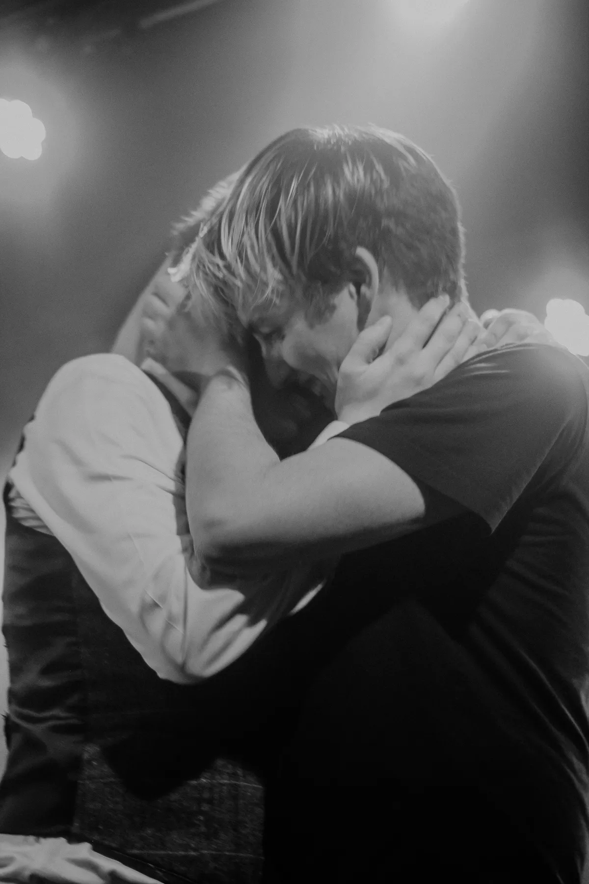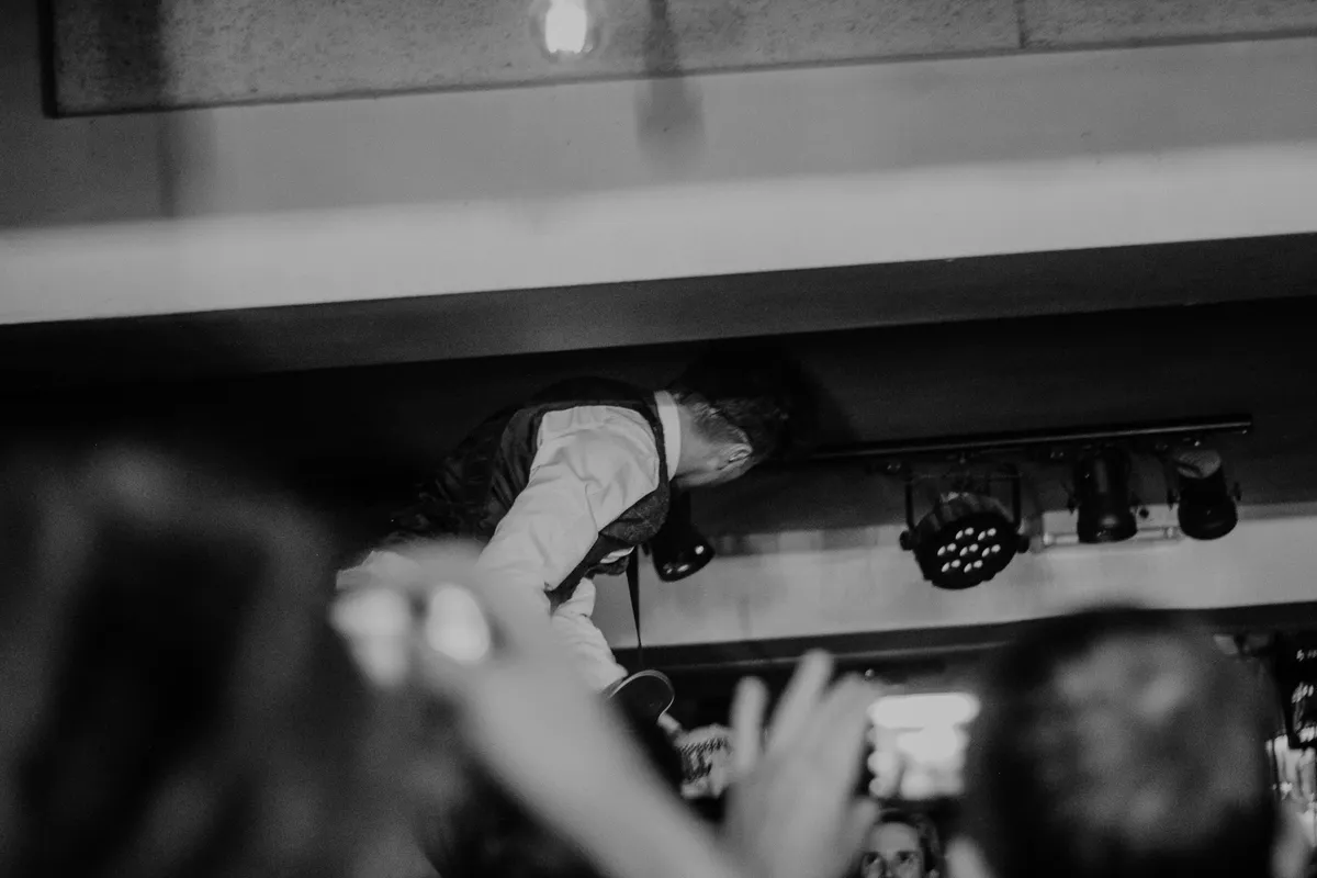 Het stevige drum en gitaarwerk krijgt bijval van de energie van de band. Scherrer duikt regelmatig het publiek in en klimt op een gegeven moment zelfs een tafel op in het midden van de zaal. Met zijn overweldigende solo, trekt hij het publiek mee in zijn onttembare energie. Wat wel nodig was, want het was af en toe rumoerig in de zaal. Met het publiek mee, kan de band daarna de overgangen van hard (Way Out) naar gevoellig (The Idea of Someone) weer naadloos in elkaar over laten gaan. Daarbij constant aanscheurend tegen de grenzen van een klein podium zoals dit. Het vraagt erom af en toe even in je arm te knijpen. Want wie de ogen sluit, waant zich even in een grotere stad dan Delft. Last Train blaast je letterlijk en figuurlijk helemaal weg. Het was een ondelftse avond in Steck. Hopelijk niet de laatste.