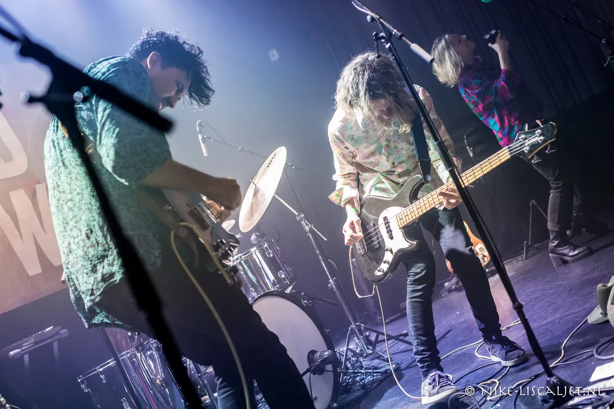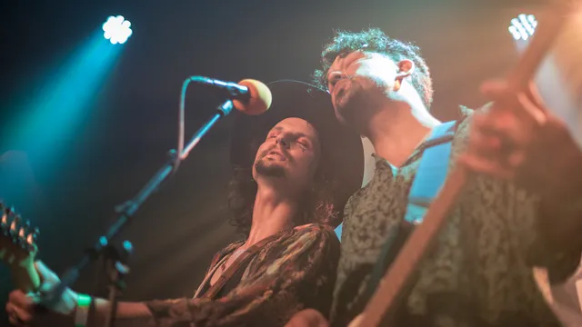 De naam ‘Folk Road Show’ verwijst naar muzikale roadshows uit de late jaren vijftig, een ondertussen ouderwets fenomeen waarbij muzikanten hun namen op een affiche bundelden om meer publiek te trekken. Tijdens de vroege tours van de Folk Road Show speelden de leden dan ook individuele sets, waarna op het einde pas de talenten werden gecombineerd voor een finale. De solosets zijn inmiddels allang verdwenen en de leden zijn samengeklonterd tot een supergroep naar het model van Crosby, Stills, Nash & Young. De band komt dan ook gezamenlijk het podium op. Via een omweg, dat wel – het is even zoeken waar de eerste klanken van openingsnummer ‘Christian Slater’ vandaan komen, voordat het publiek realiseert dat de groep de achteringang heeft genomen. Omdat de zaal goed gevuld is, zijn we al bij de bridge van het nummer wanneer de vijf fleurige blousejes het podium bereiken en overstappen op versterkte instrumenten. Vijf inderdaad, want het viertal wordt deze tour aangevuld door een vrouwelijk lid – Brea Robertson zou aanvankelijk onderdeel van het voorprogramma Flora Falls zijn, maar heeft zich tijdens de tour ontpopt tot een volwaardig bandlid.