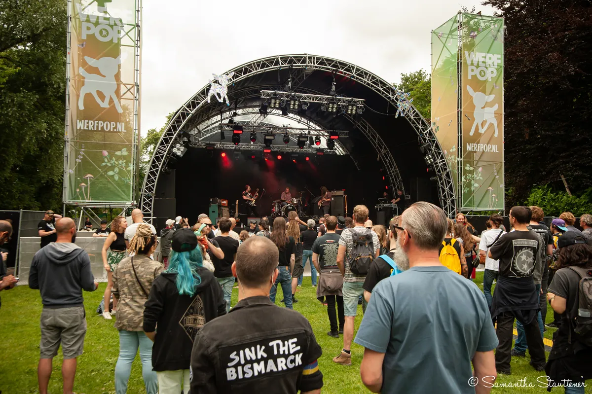 Hoezeer Leiden en verre omstreken snakten naar het festival met het iconische hertje blijkt wel uit het feit dat alle 10.000 entreekaarten waren verkocht. Werfpop was voor het eerst in 40 jaar niet gratis toegankelijk: met het annuleren van edities 2020 én 2021 en een tegenvallende omzet in de jaren ervoor was de financiële rek eruit. Maar dat drukte de feeststemming geenszins. Stamgasten en nieuwkomers vierden de verbinding in de ‘festivalweide’; op P1 en P2 werd hard en gevarieerd getimmerd aan de soundtrack voor ‘Woodstock aan de Rijn’. Kijk en luister je mee met onze verslaggevers? Voilà, deel twee: ‘de avondeditie’.
