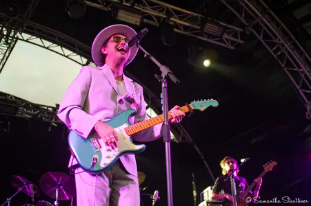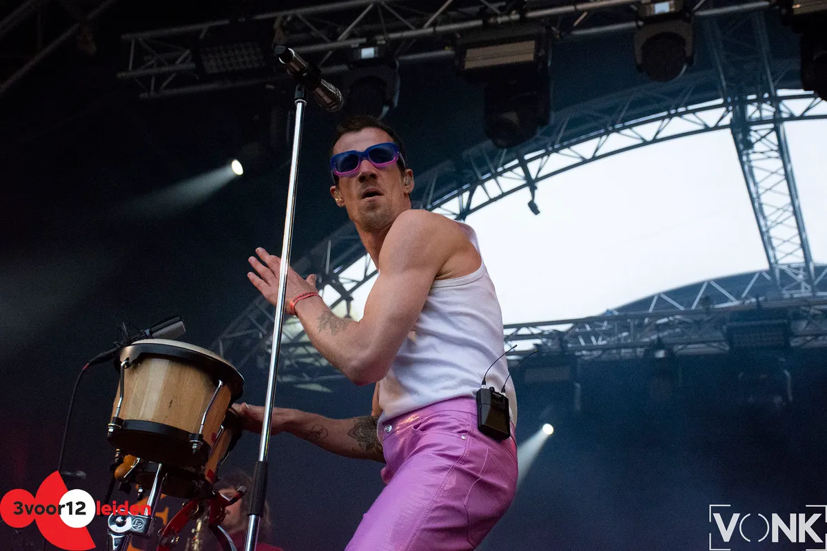 Regelmatig wisselt de zanger van gitaar en laat hij zich lekker gaan in de denderende improvisaties. Love it or leave it. Hij is niet alleen een auteur in de artrock die graag een personage vol van sarcastische sterallures projecteert, maar ook iemand die open kan zijn over het opgeven van de drank en drugs wanneer een fan vooraan spijtig genoeg vomeert. Ruwe bolster, blanke pit. Hij hoeft maar ‘Are you ready to fuck shit up?’ te roepen of het veld lijkt te veranderen in een springkussen.