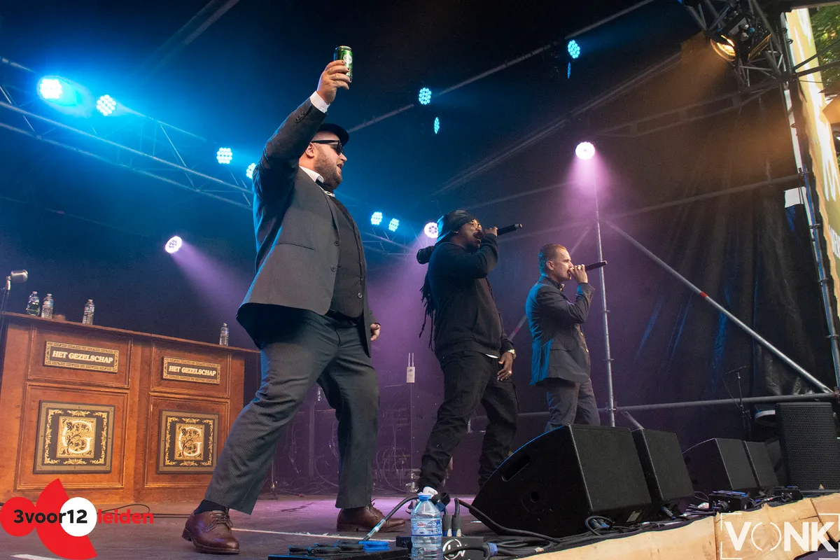 Daarna doen Diggy en Jordy duelerende cowboys na en delft de don van Delfshaven het onderspit door een geweerschot uit een microfoon. Een dooie boel blijft het echter niet als ‘Het Gezelschap’ wordt ingezet, een moker van een nummer met het retro ‘Jungle Groove’ uit Donkey Kong Country voor de Super Nintendo als onderliggende beat. Een natte moesson van bier daalt over het skankende publiek heen.