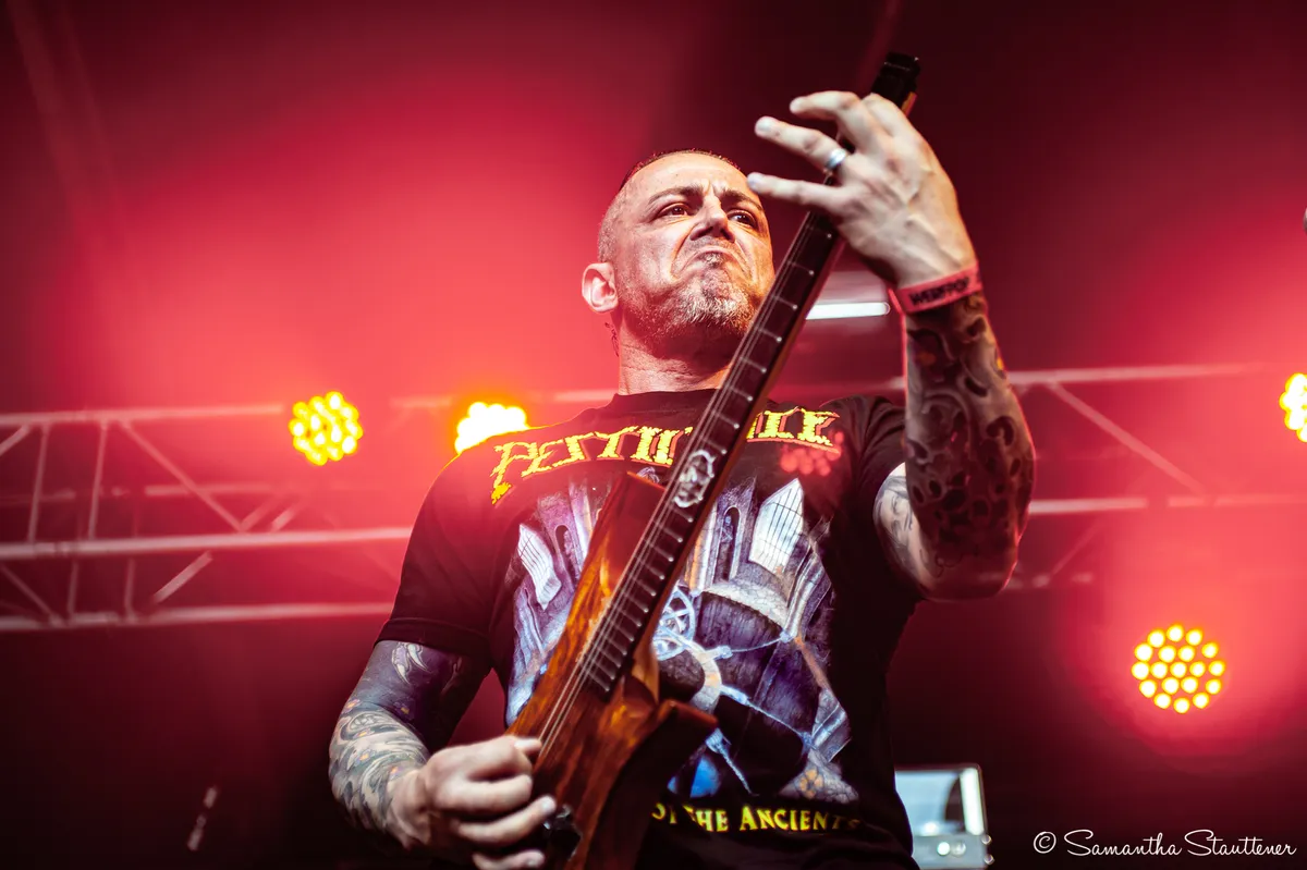 ‘Leiden, make some noise for Pestilence!’, aldus de presentator, wat het publiek enthousiast doet. Maar opwarming van de toeschouwers voor deze metalband blijkt eigenlijk niet nodig. Nog voor er één noot is gespeeld, maken bezoekers al ruimte voor een moshpit. Dat is niet zo gek, want deze vierkoppige, Enschedese groep bestaat al een tijdje (sinds 1986) en is een bekende naam in de deathmetalscene.