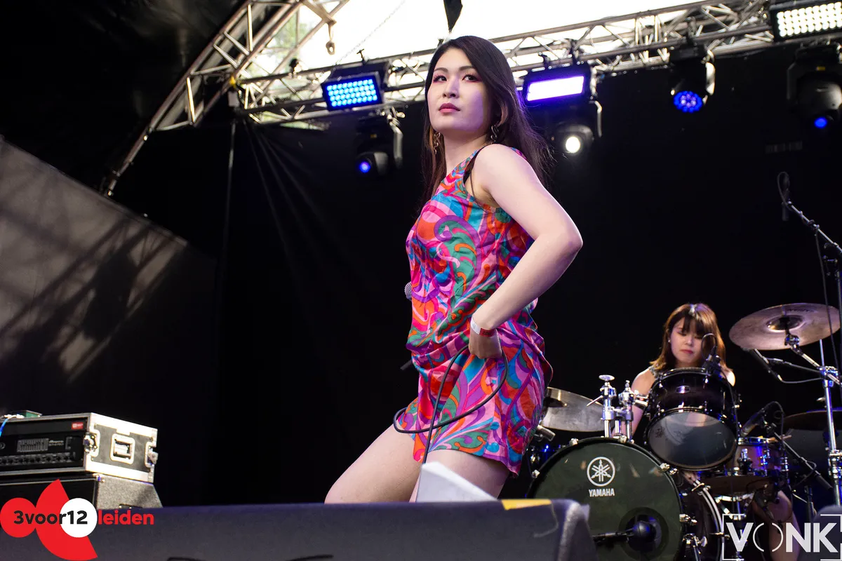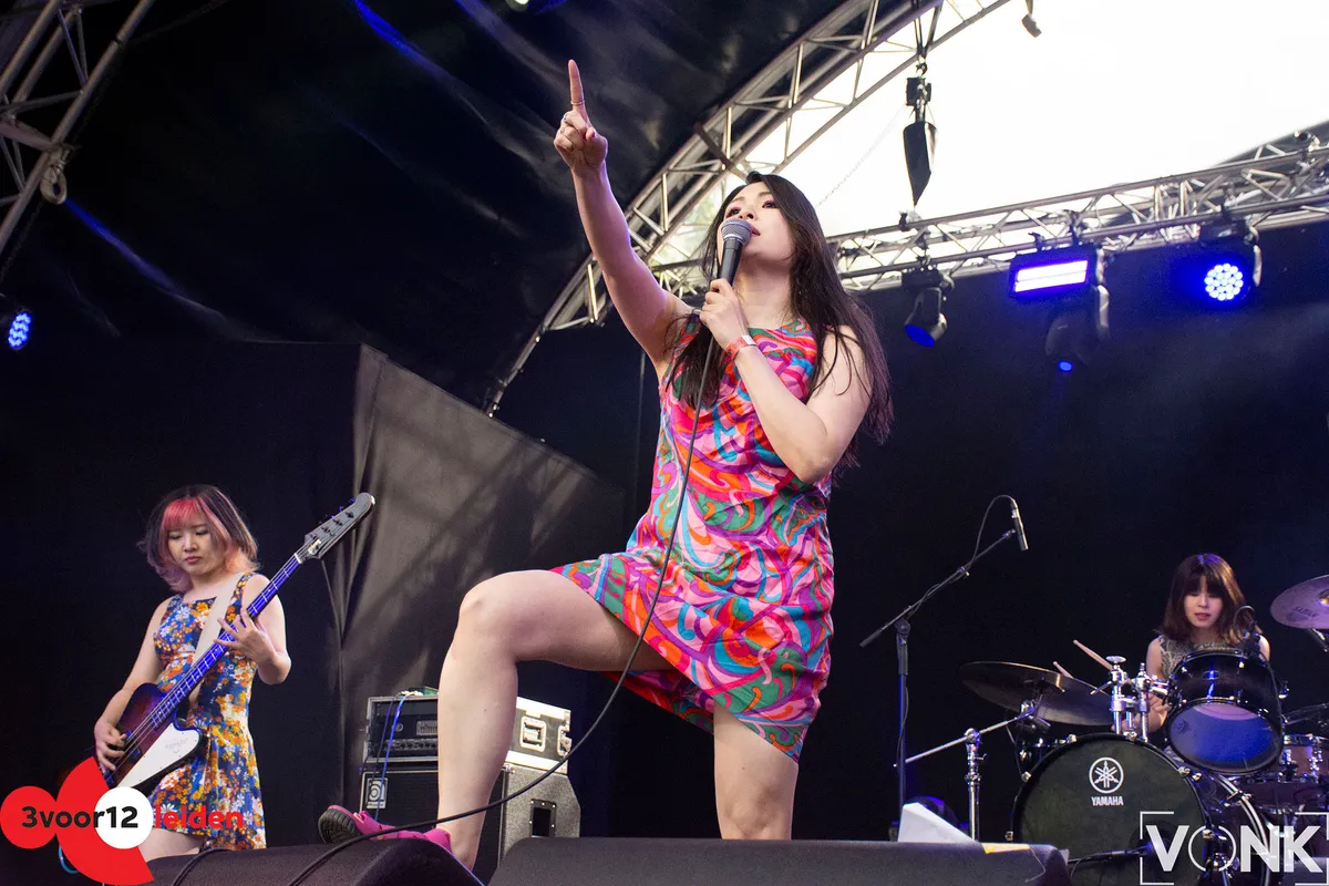 Hun nummers hebben de typische tijdsduur van noise (dus zijn soms klaar in 30 seconden), de vocals zijn vierstemmig en de lyrics zijn Japans met sporadisch wat Engels erdoorheen. Het kost de gefascineerde toeschouwers even wat tijd om erin te komen, maar dan springt de vrolijke uitstraling van de dames over op het publiek.